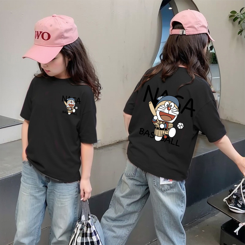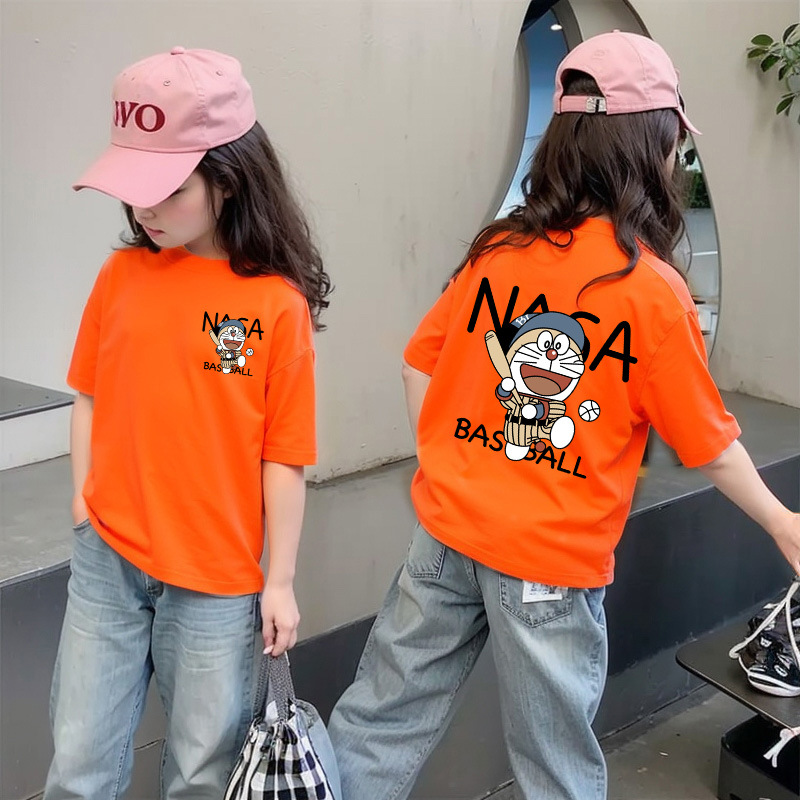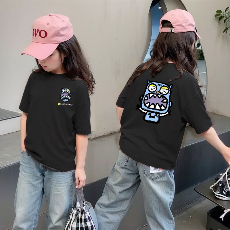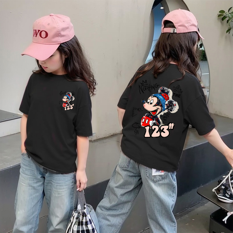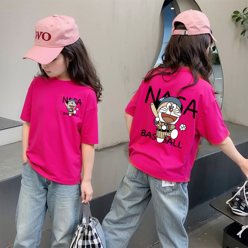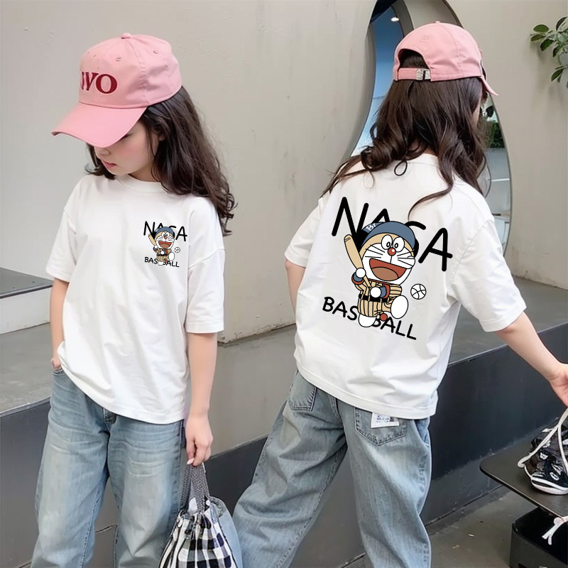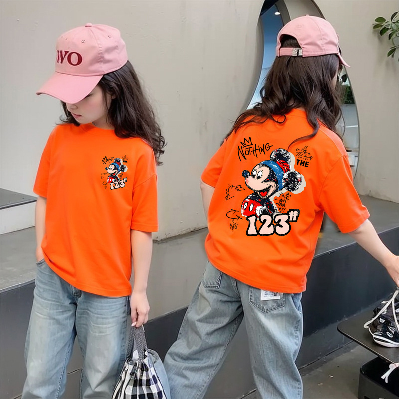 걸스 서머 코튼 반팔 티셔츠 유행 서양식 어린이 캐주얼 루즈 탑 큰 어린이 여름 만화 티셔츠