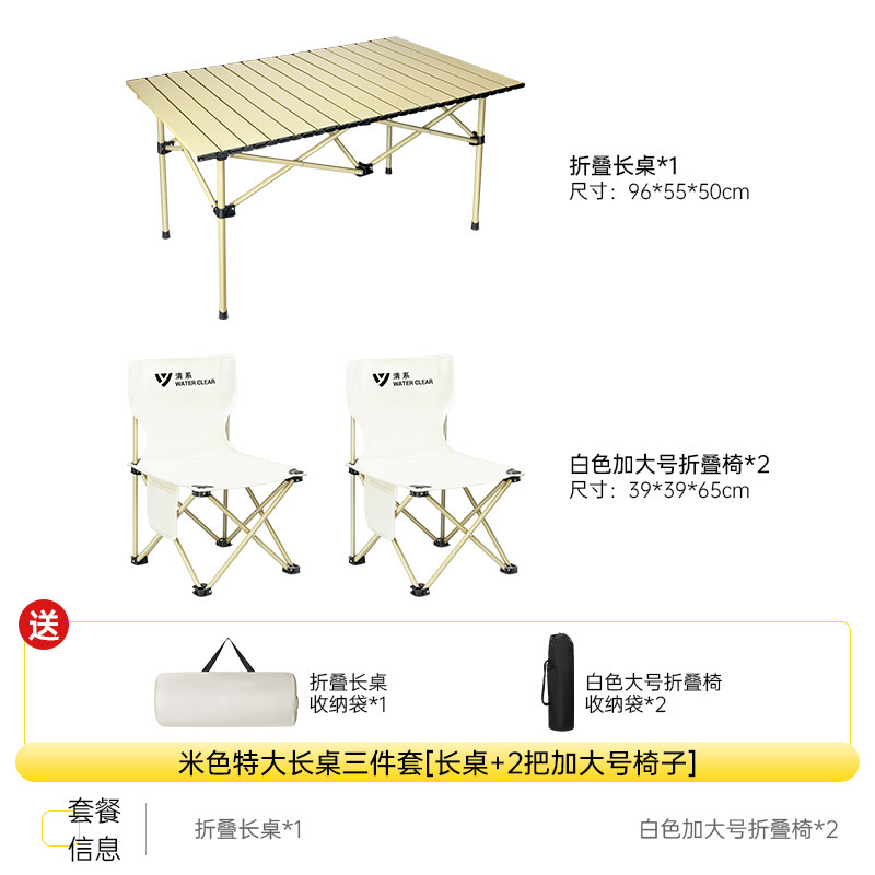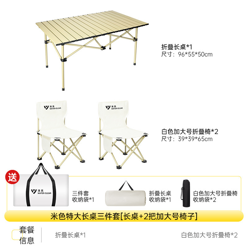 • ❀✿❀✿❃❀베이지색 긴 테이블 + 흰색 특대형 접이식 의자*2 + [3종 세트 풀 수납가방]✿❃❀