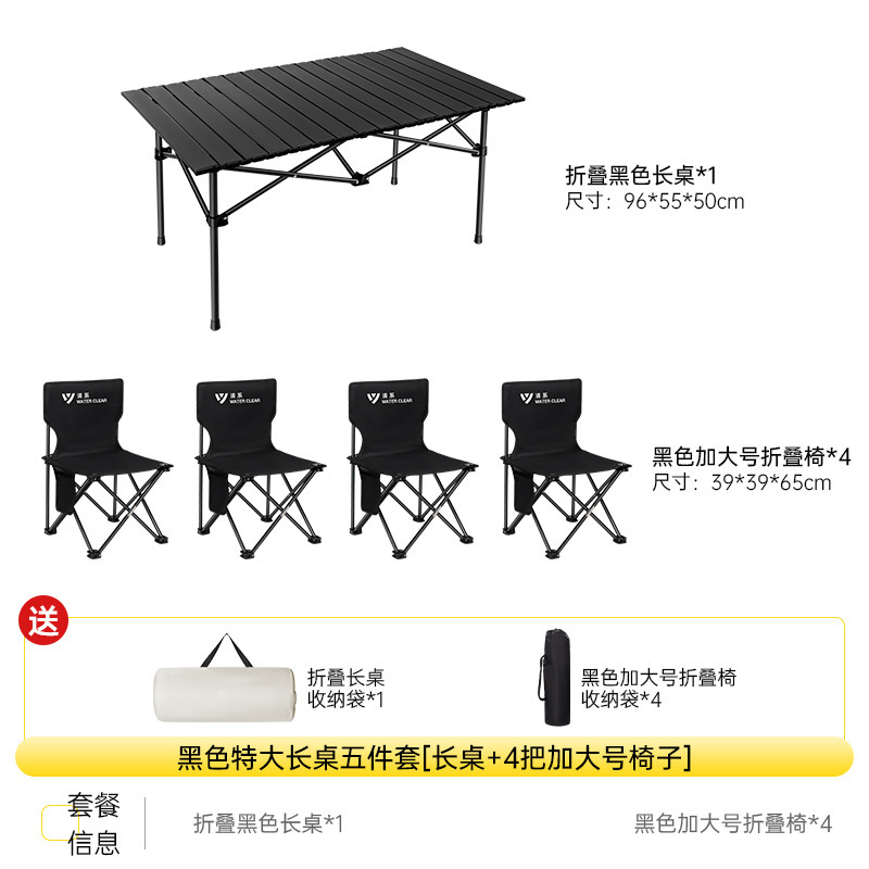 • ❀✿❀✿❃❀블랙 특대 롱 테이블 + 블랙 특대 접이식 의자*4 + [5종 세트 풀 수납가방]✿❃❀