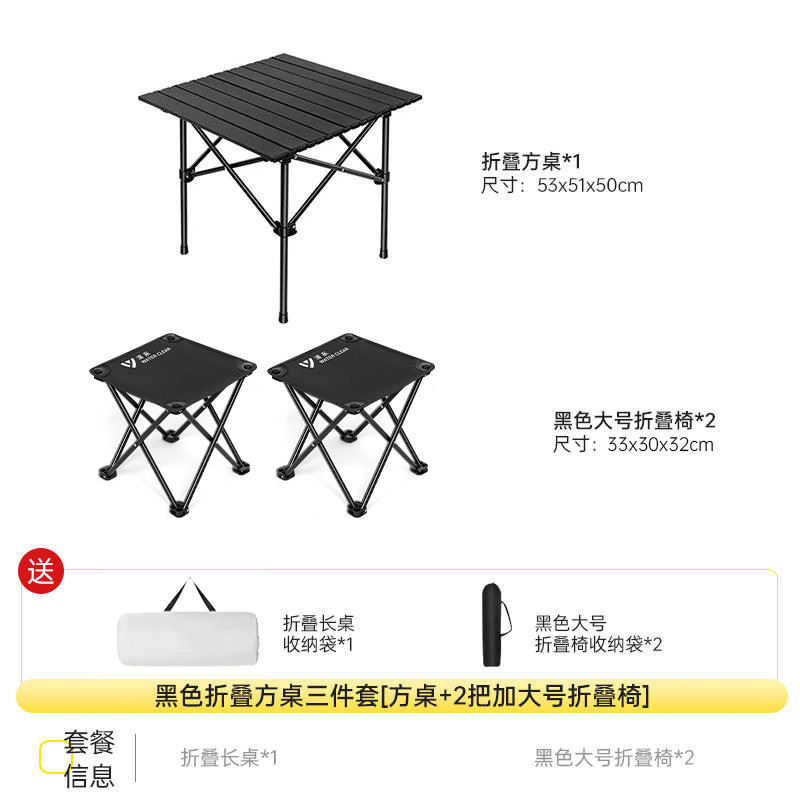 • ❀✿❀✿❃❀블랙 스퀘어 테이블 + 블랙 대형 접이식 의자*2✿❃❀