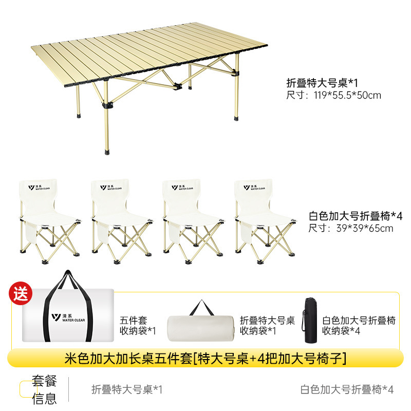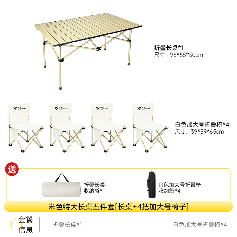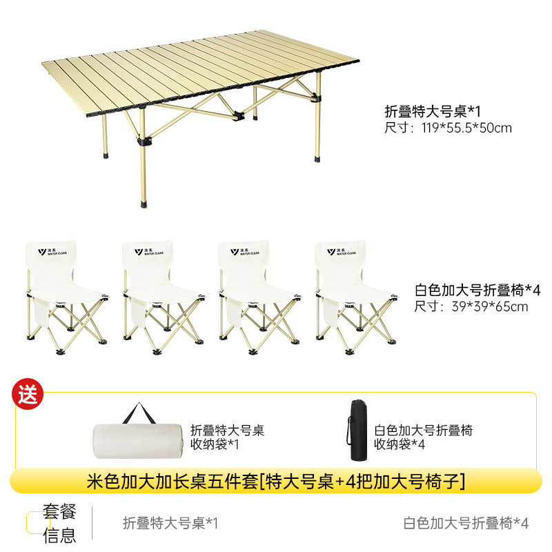 • ❀✿❀✿❃❀베이지색 긴 테이블 + 흰색 특대형 접이식 의자*4 + [5종 세트 풀 수납가방]✿❃❀