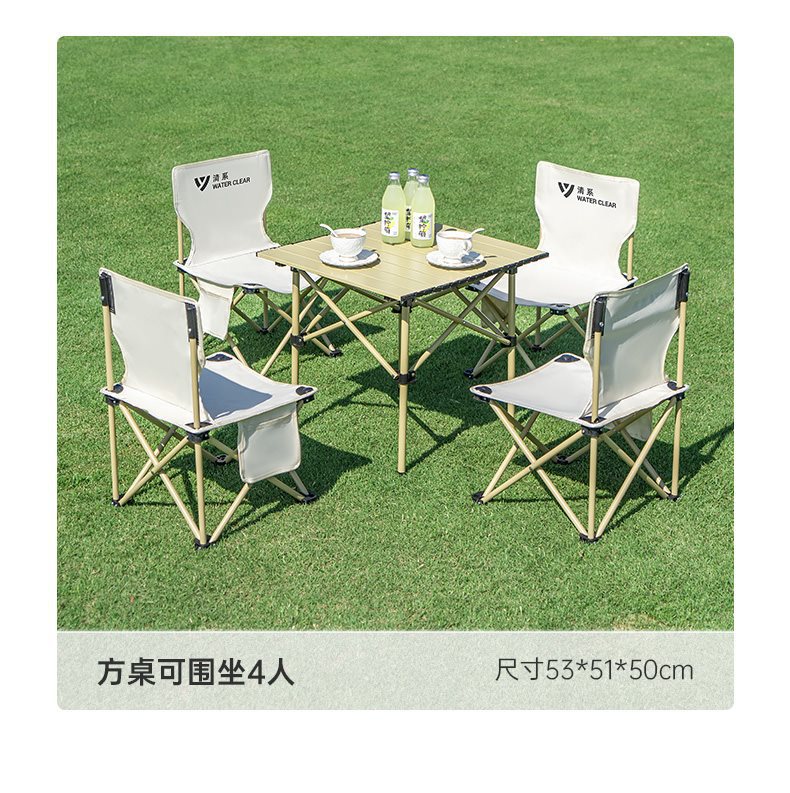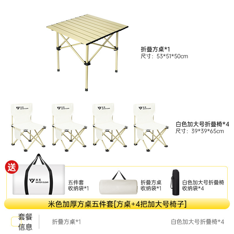 • ❀✿❀✿❃❀베이지색 사각 테이블 + 흰색 특대형 접이식 의자*4 + [5종 세트 풀 수납가방]✿❃❀