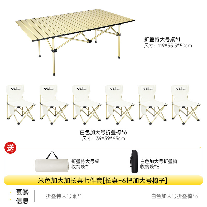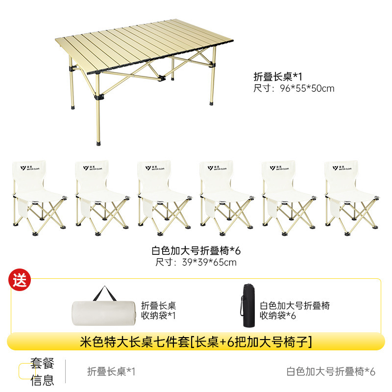 • ❀✿❀✿❃❀베이지색 긴 테이블 + 흰색 특대형 접이식 의자*6 + [7종 세트 풀 수납가방]✿❃❀