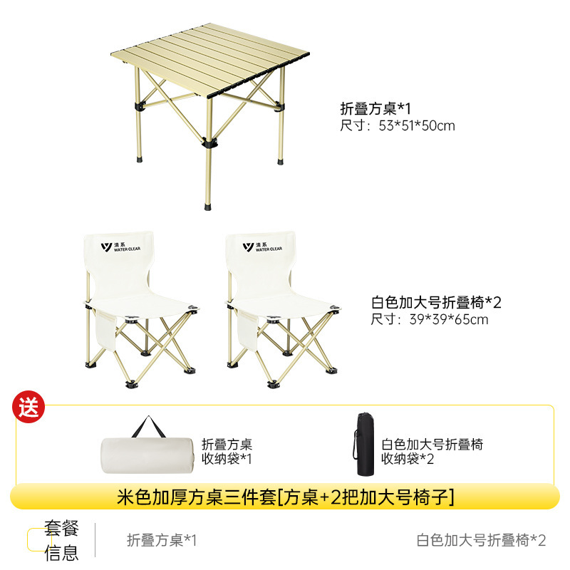 • ❀✿❀✿❃❀베이지색 사각 테이블 + 흰색 특대형 접이식 의자*2 + [3종 세트 풀 수납가방]✿❃❀