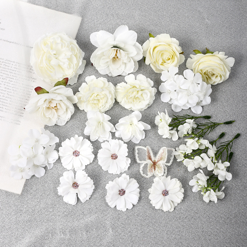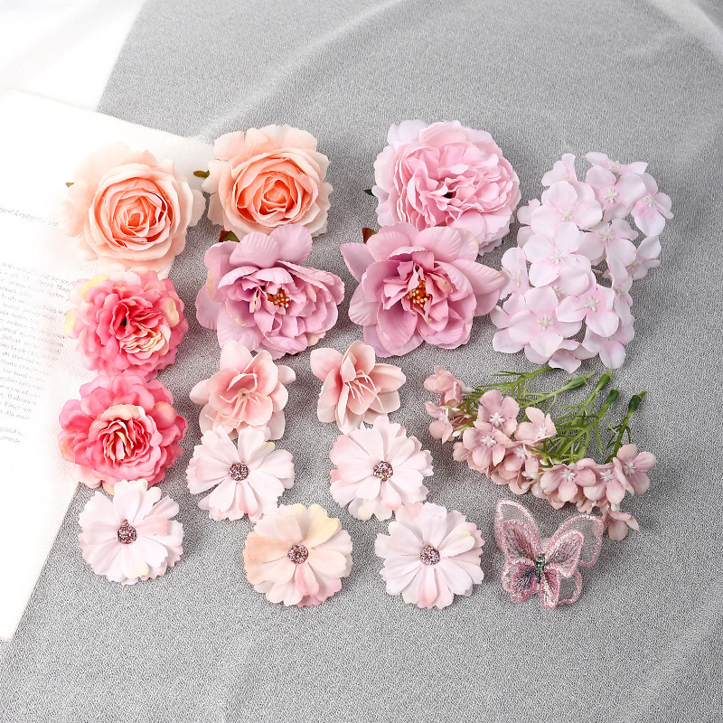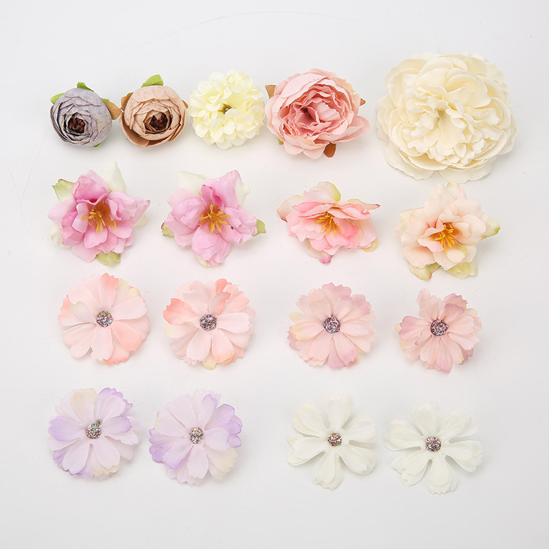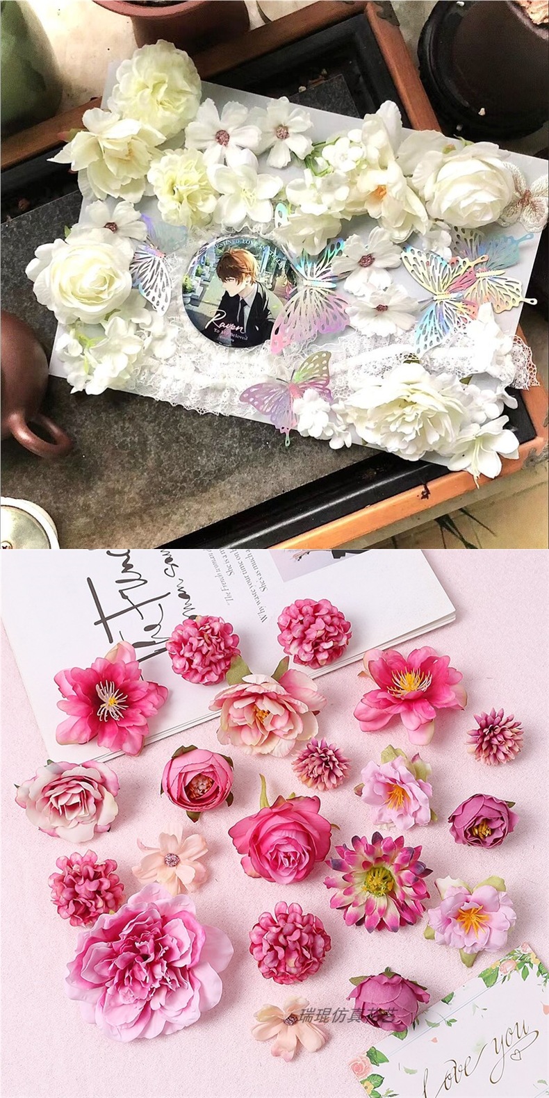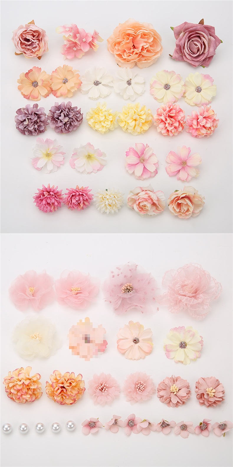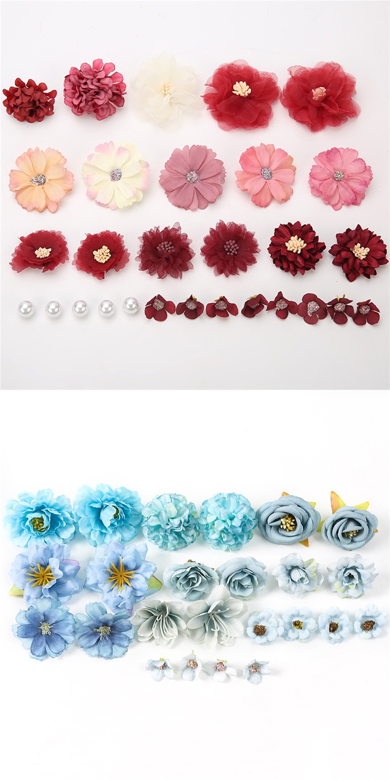 꽃 소재 가방 가짜 꽃 실크 꽃 학자 모자 DIY 소재 헤어 후프 헤어핀 꽃 소재 가방 촬영 소품