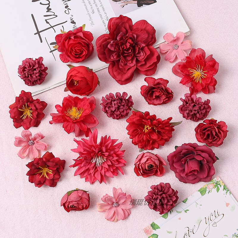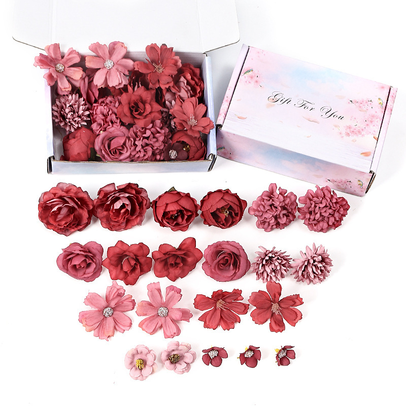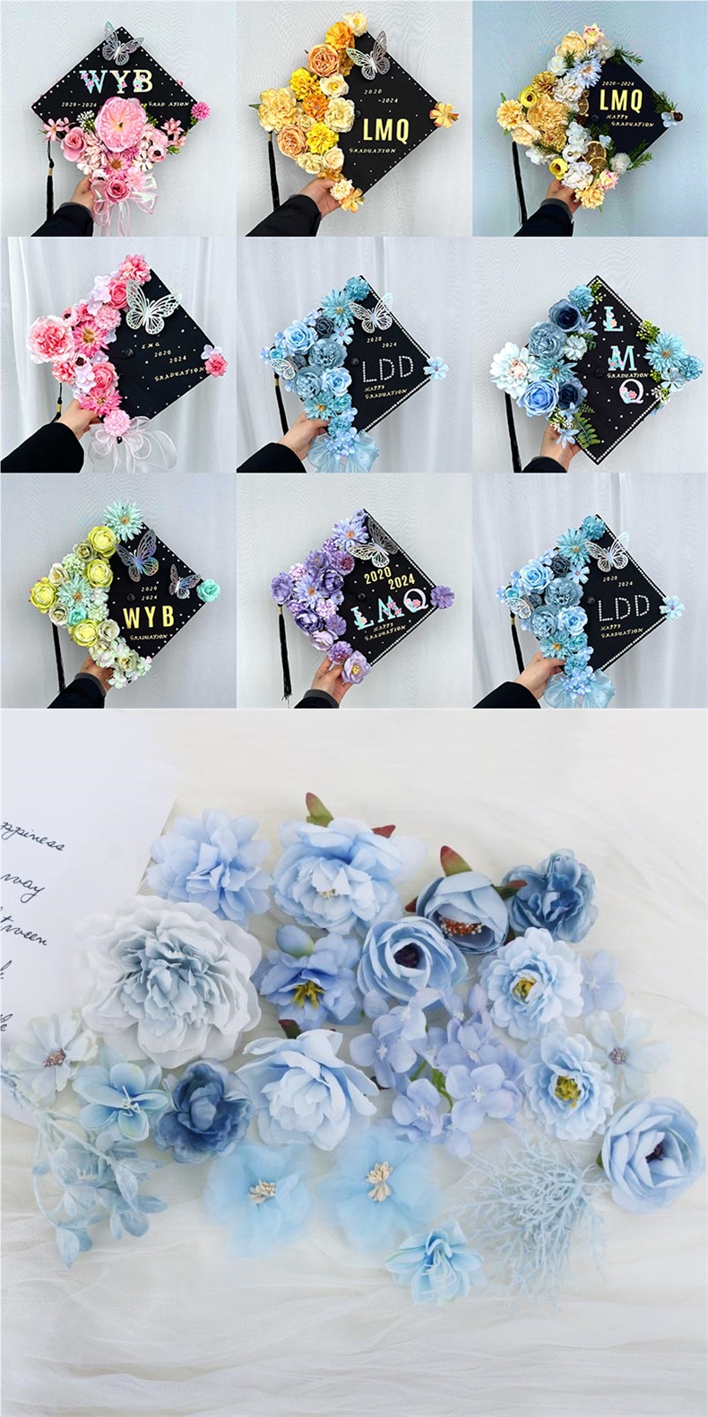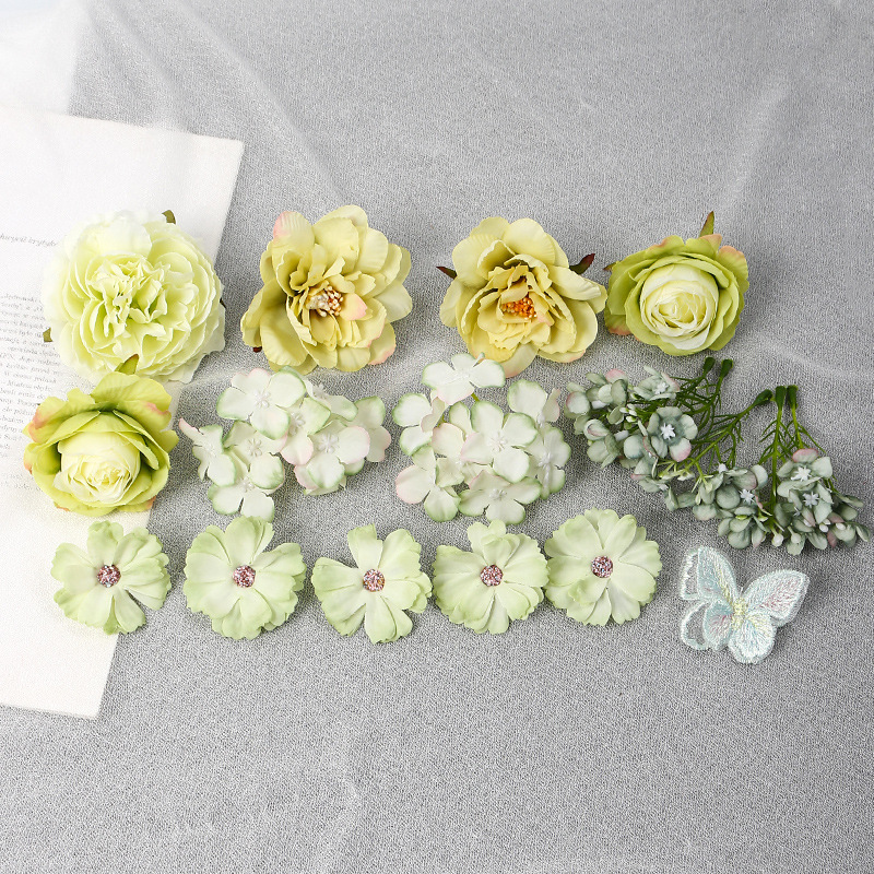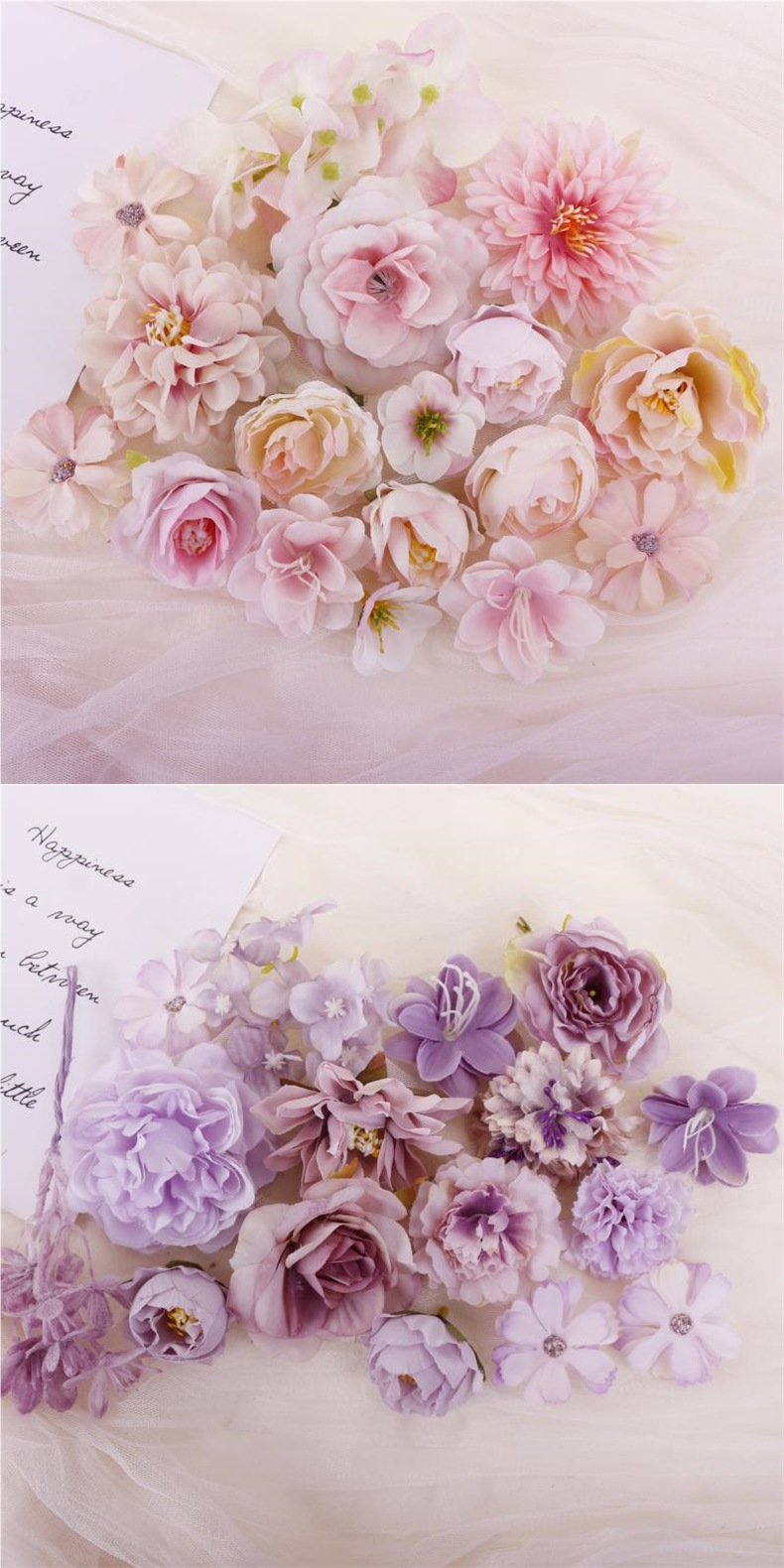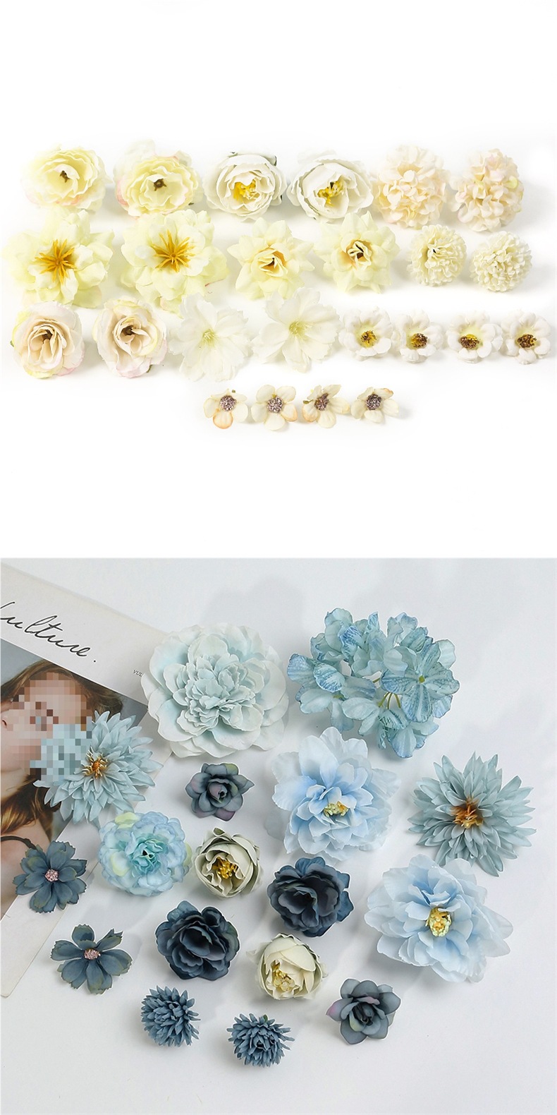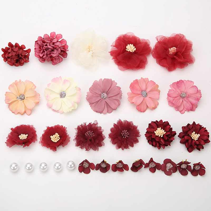 꽃 소재 가방 가짜 꽃 실크 꽃 학자 모자 DIY 소재 헤어 후프 헤어핀 꽃 소재 가방 촬영 소품
