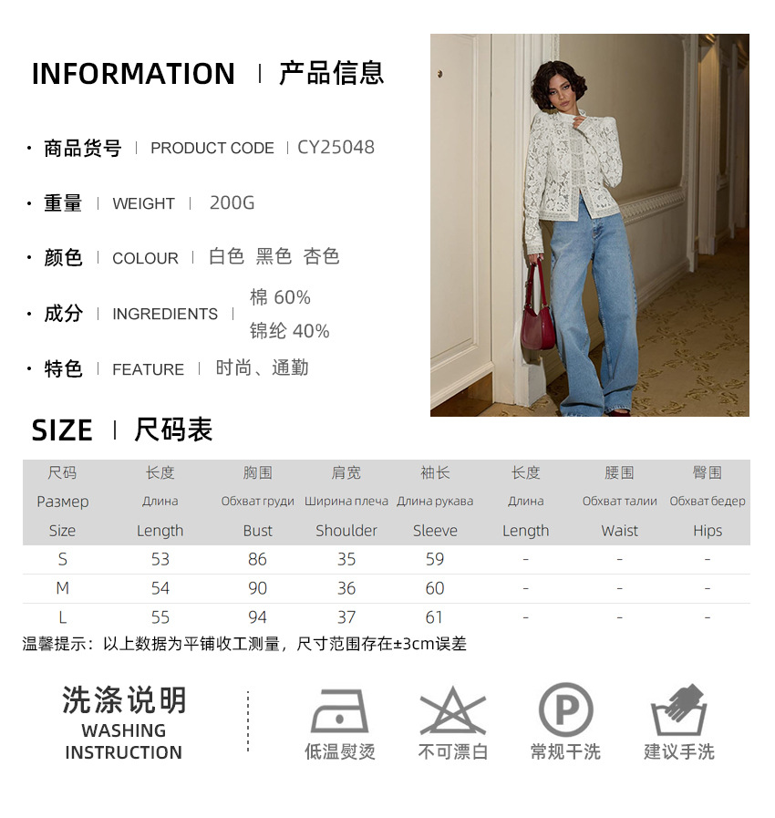 2025 여름 레이스 크로 셰 뜨개질 칼라 슬림 핏 셔츠 여성 디자인 센스 패션 유럽과 미국 국경 간 우아한 통근스토어 가기