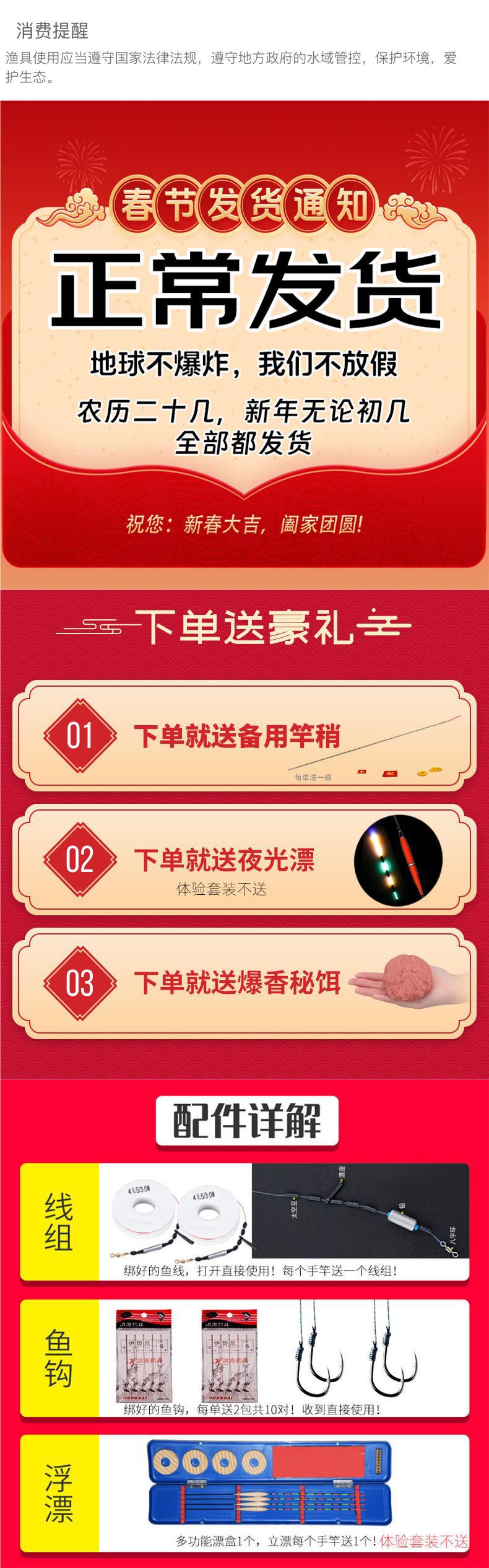 • 7.2m 6.3+ 5.4m + 낚시 장비 풀 세트 보내기