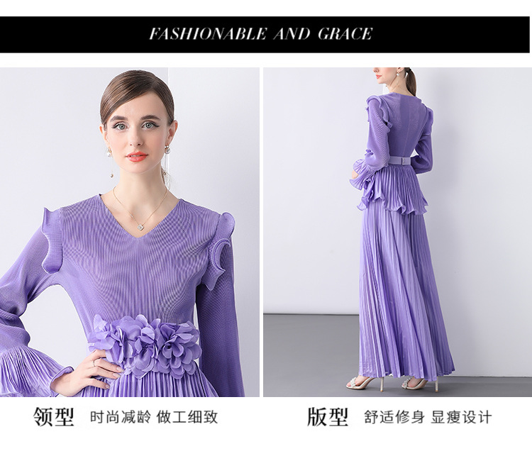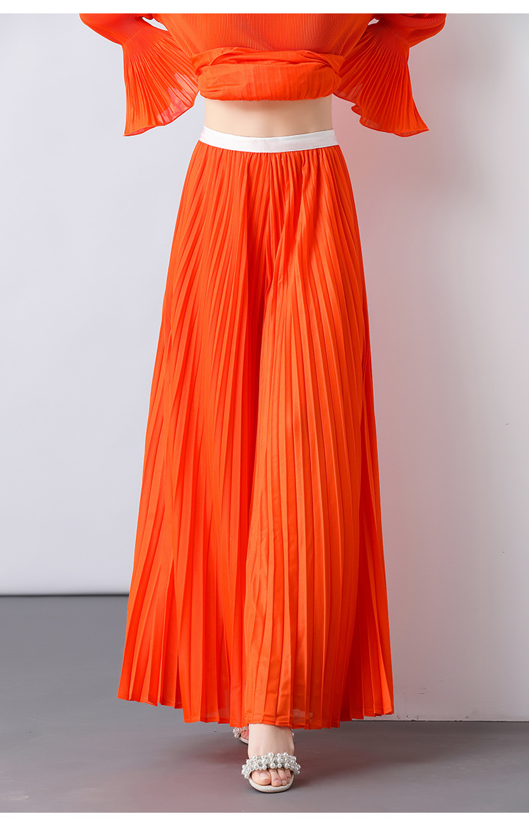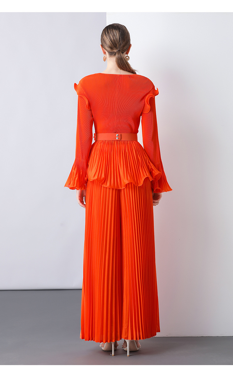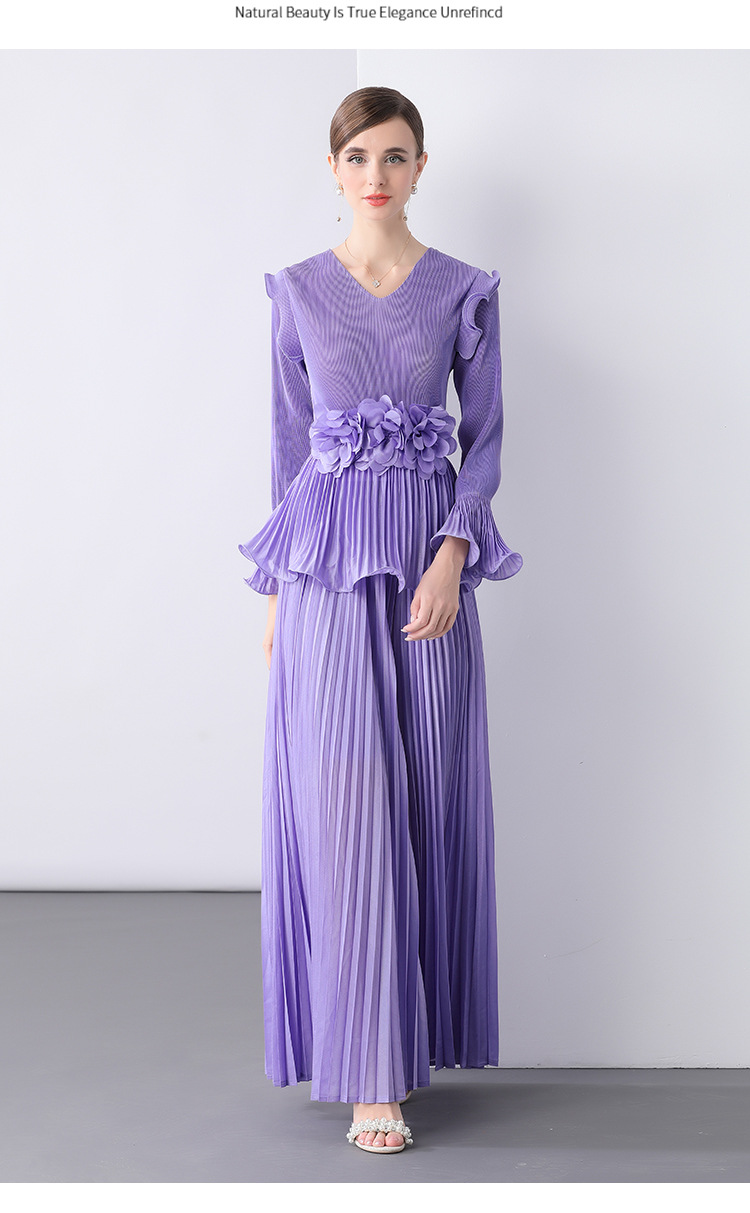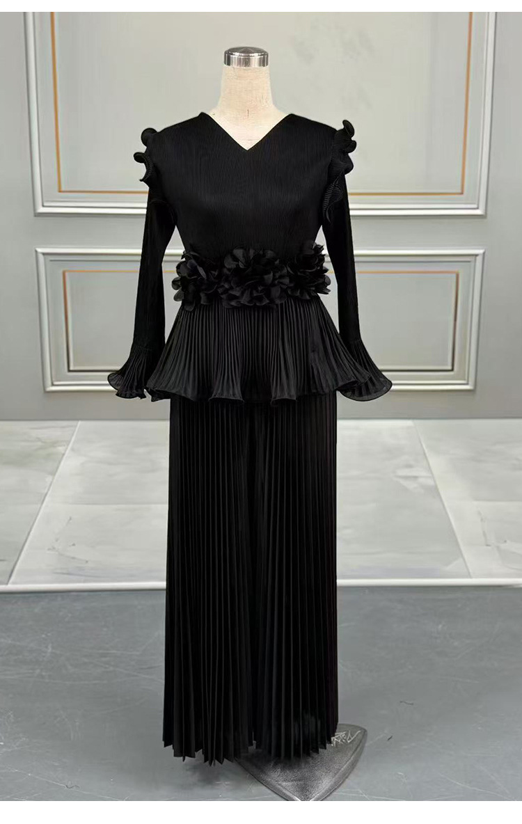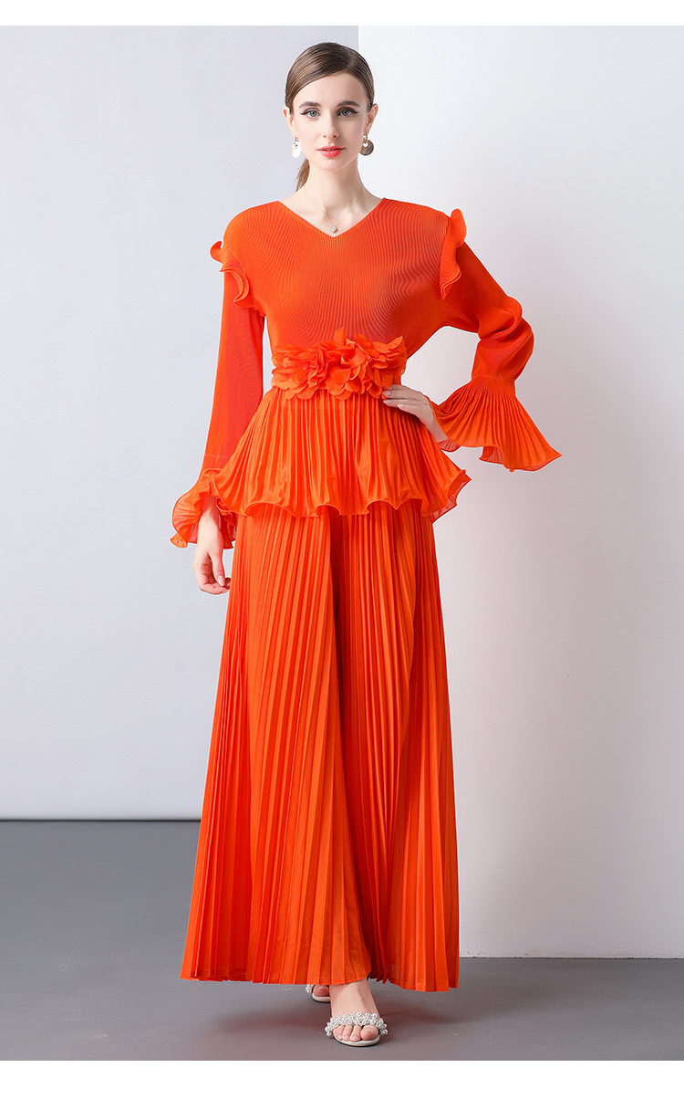 2512 프렌치 입체 플라워 스플라이싱 슈트 여성 봄 신작 미야케 플리츠 러플 탑 하이웨이스트 와이드 팬츠