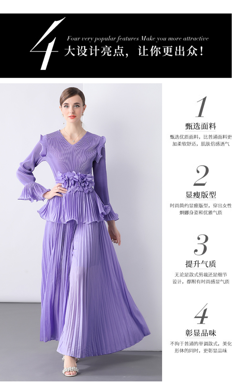 2512 프렌치 입체 플라워 스플라이싱 슈트 여성 봄 신작 미야케 플리츠 러플 탑 하이웨이스트 와이드 팬츠스토어 가기