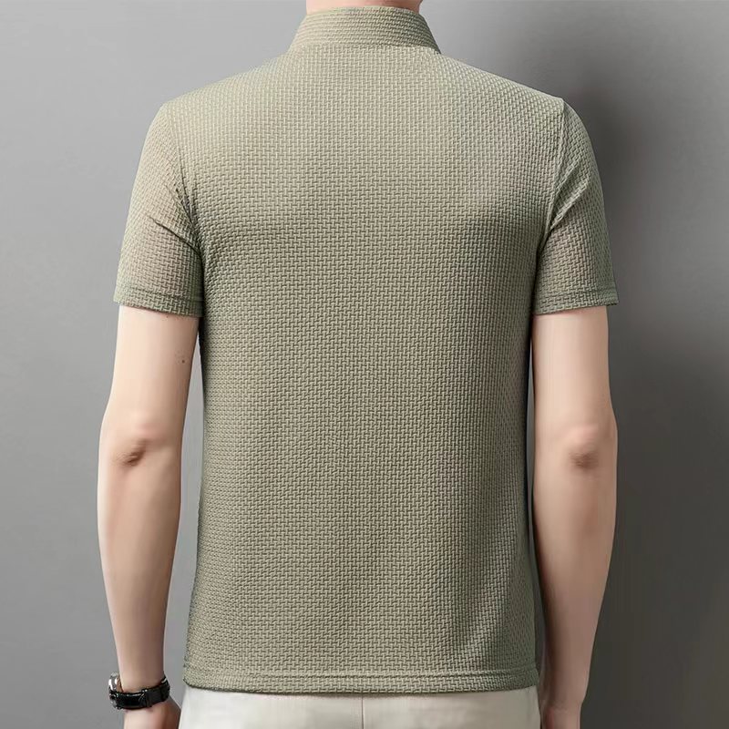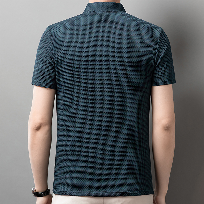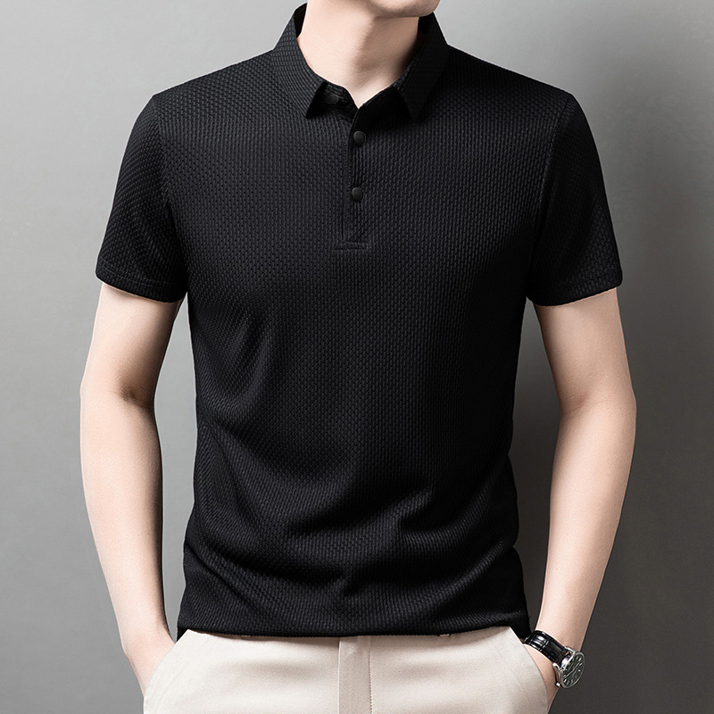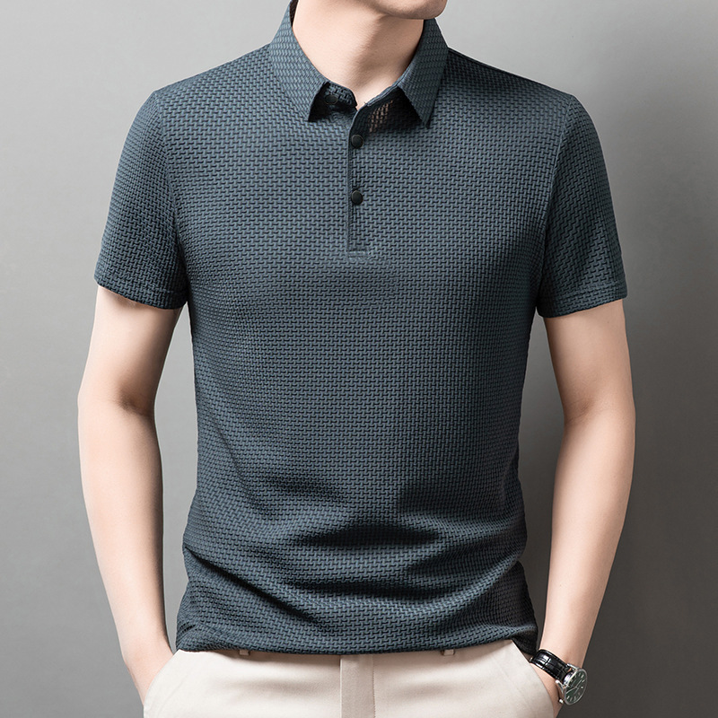 국경 간 인기 남성 캐주얼 패션 반팔 라펠 폴로 셔츠 여름 통기성 얼음 느낌 뼈 꽃 탑 대외 무역