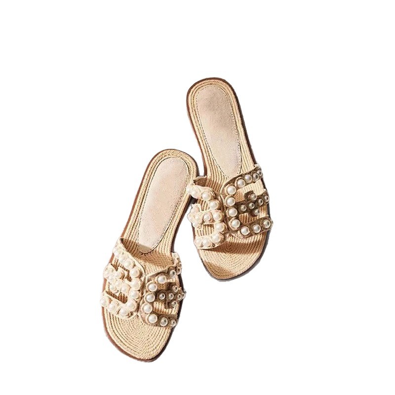 (재고 있음) Lu Shuxin의 같은 스타일 여름 신작 다용도 슬리퍼 플랫 밑창 여성 아우터웨어 고급 샌들