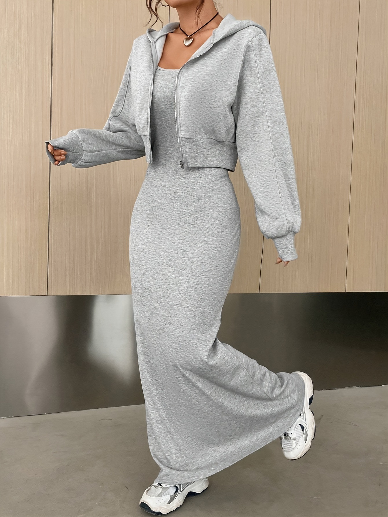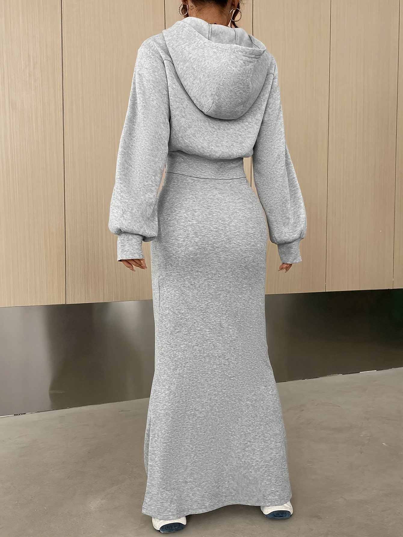 2025 패션 스타일 - 유럽과 미국 스타일의 우아한 출퇴근복 세트, 지퍼 긴팔 원피스 니트 스커트 세트스토어 가기