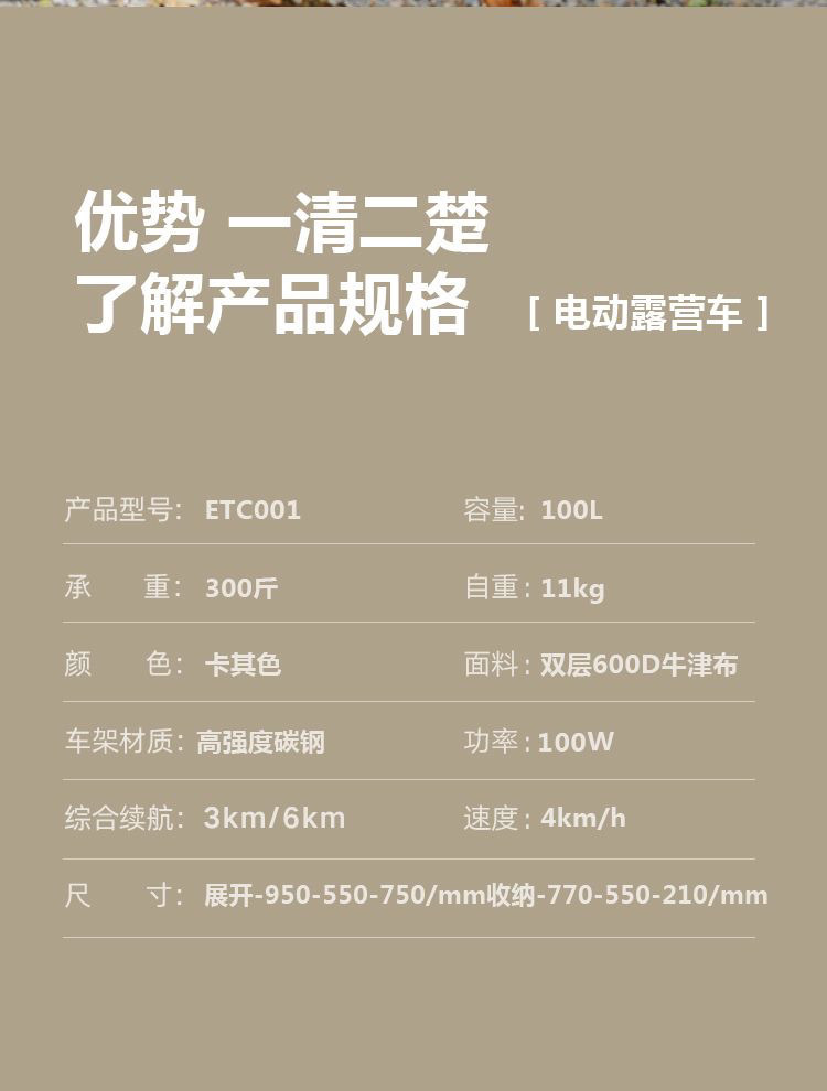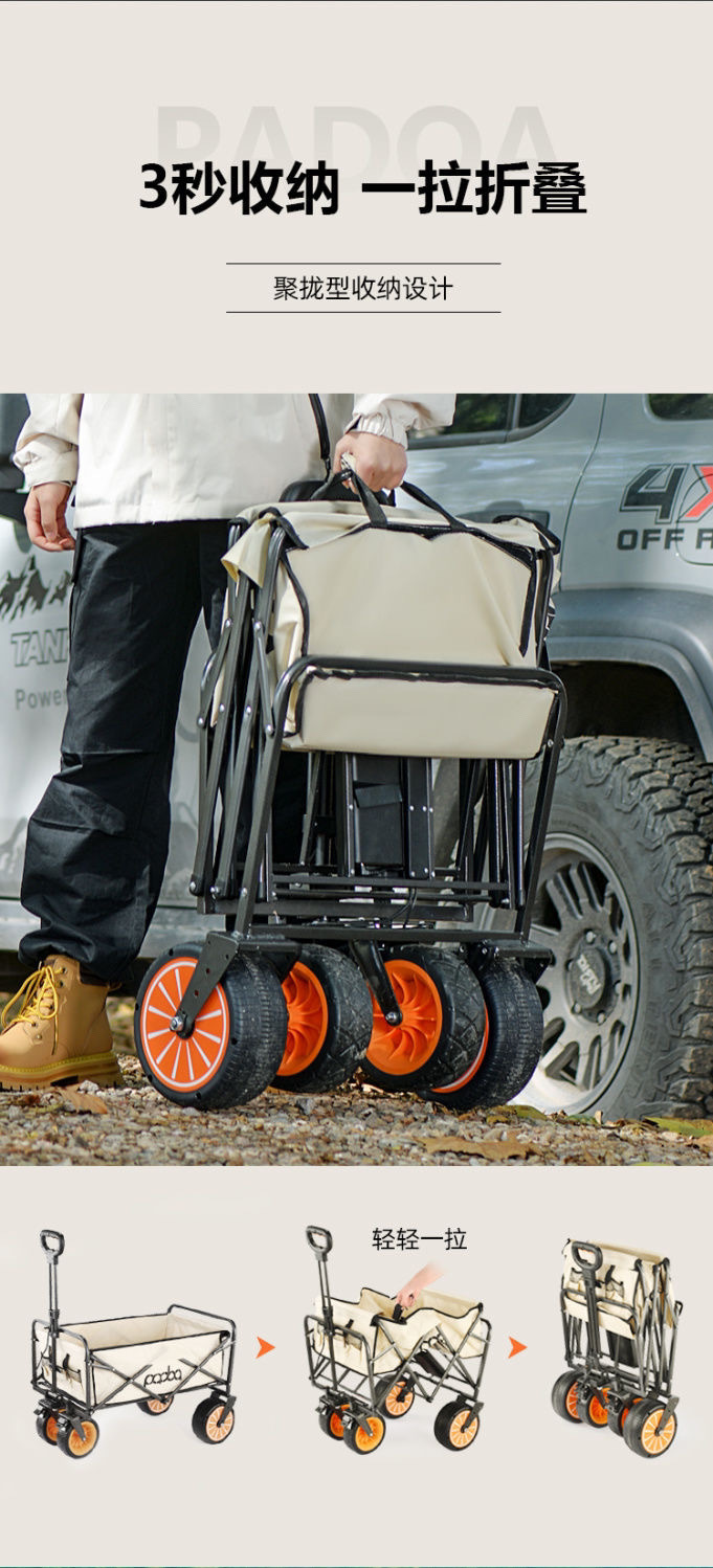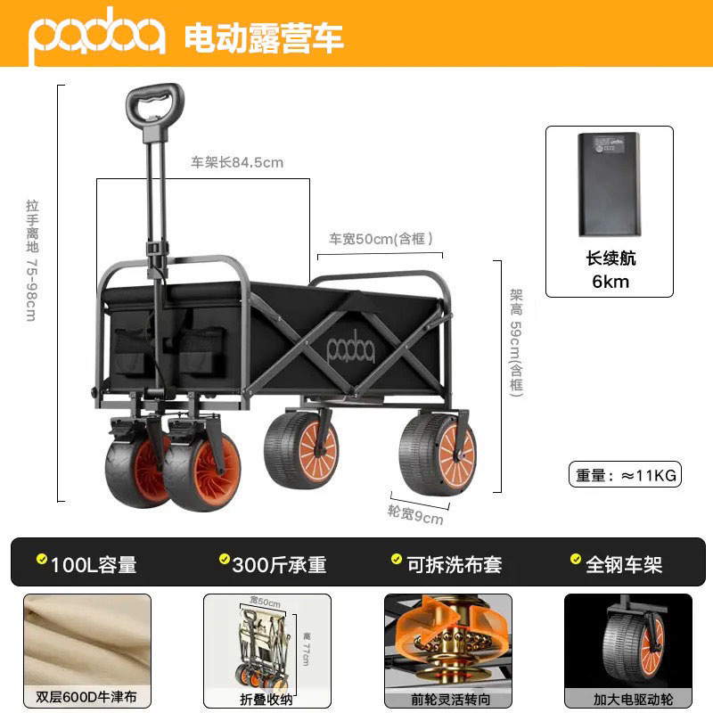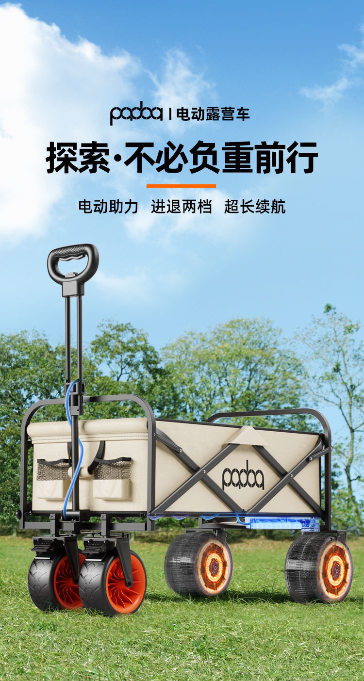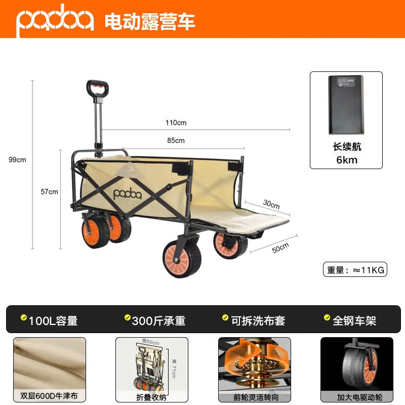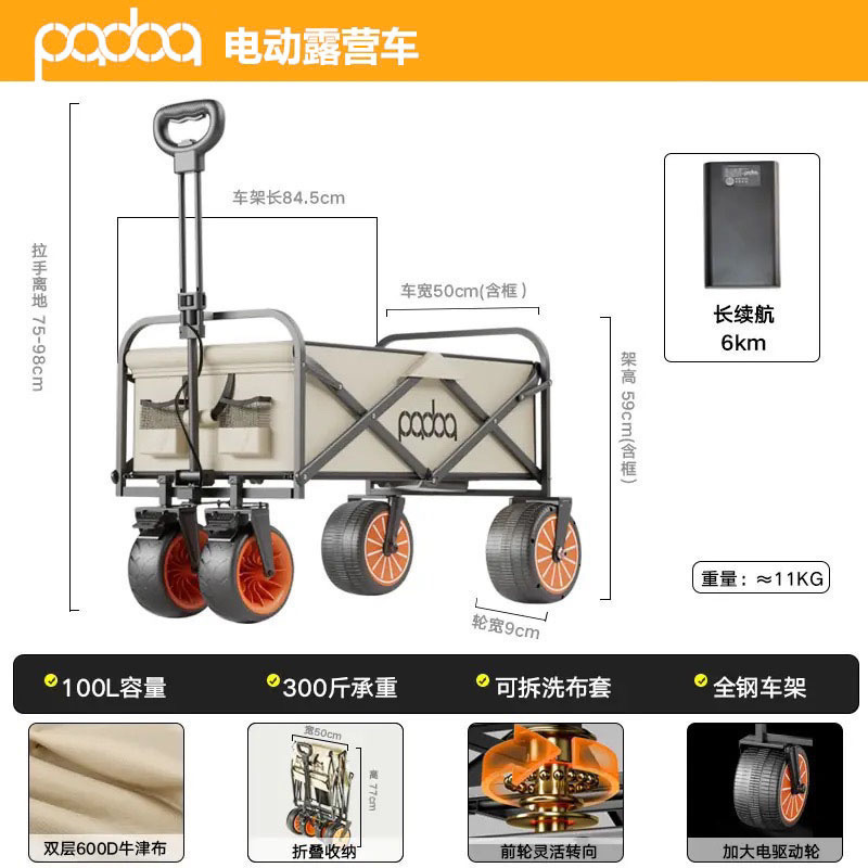 可折叠电动露营车营地户外小推车野营摆摊野餐拖车出游带娃神器