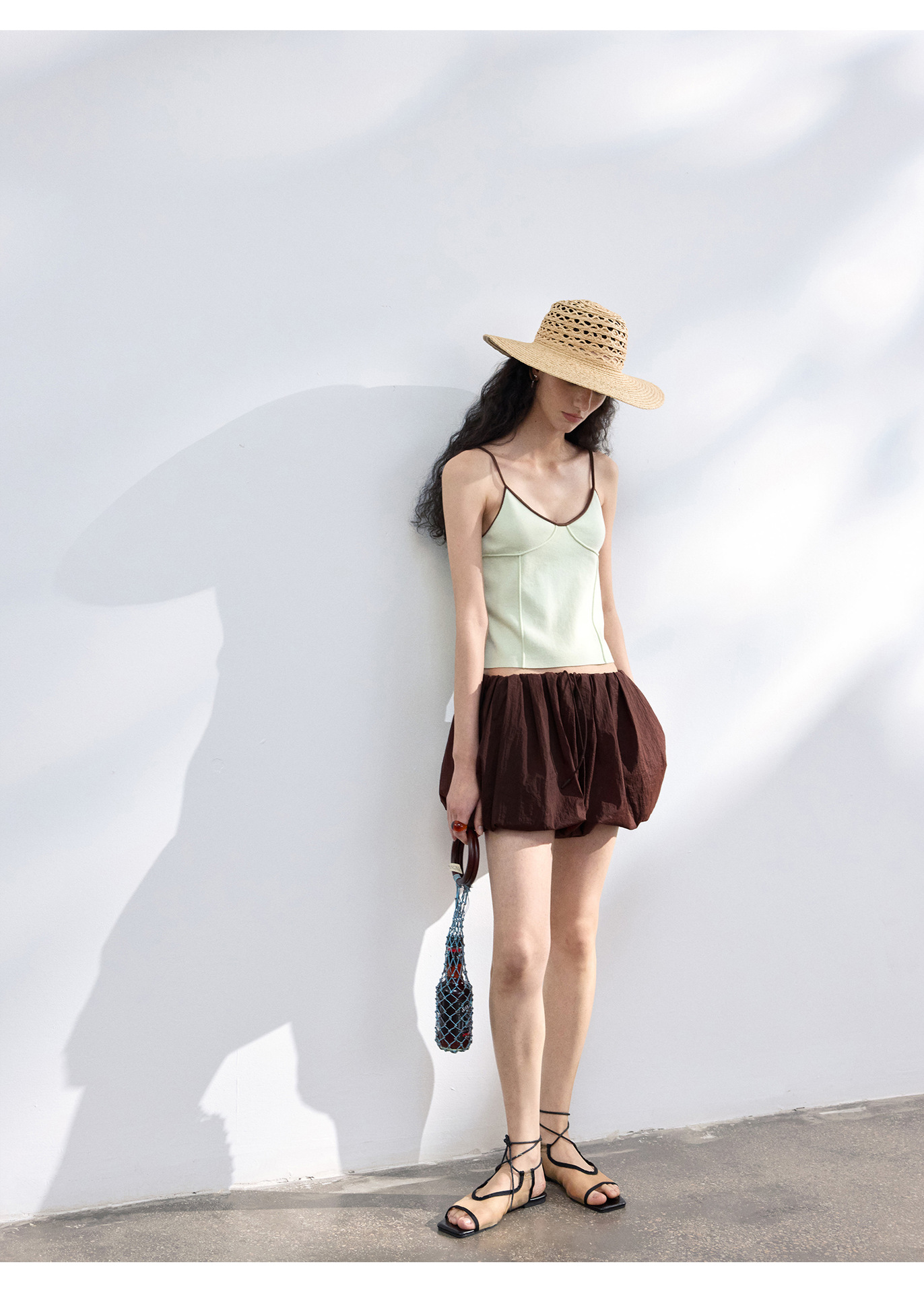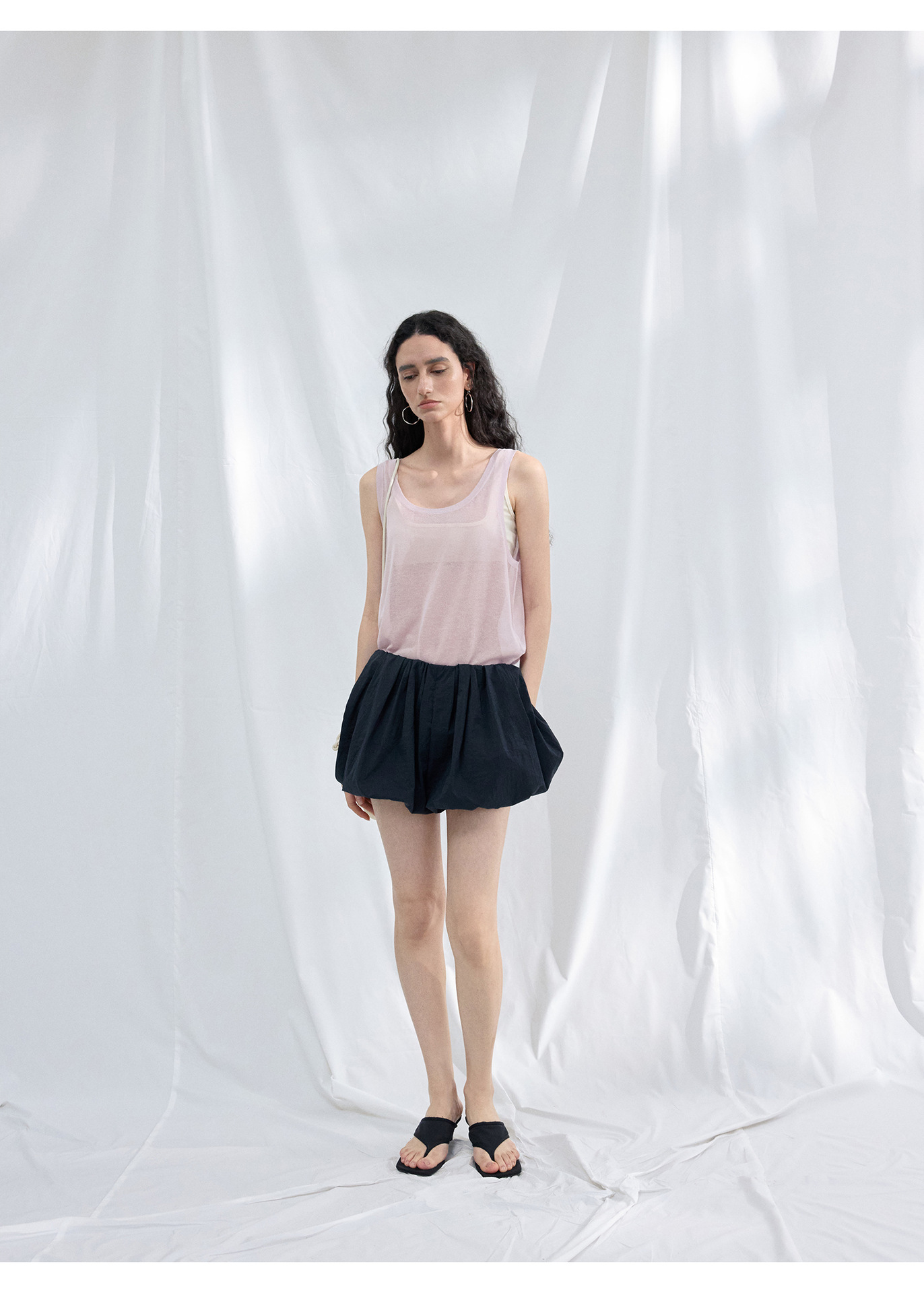 [Collinear] COLNE 여름 새로운 drawstring 탄성 허리 주름 나일론 느슨한 캐주얼 버블 반바지 여성 C5218