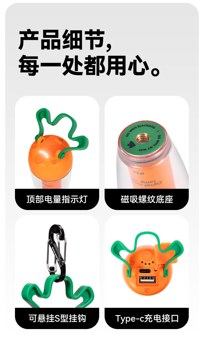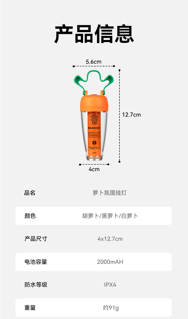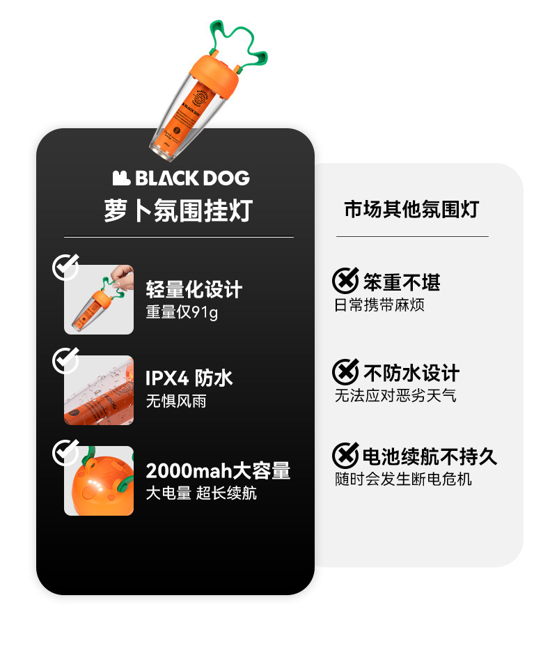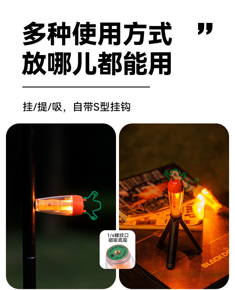 Blackdog 야외 당근 램프 고가치 야외 긴 배터리 캠핑 램프 조명 분위기 텐트 램프