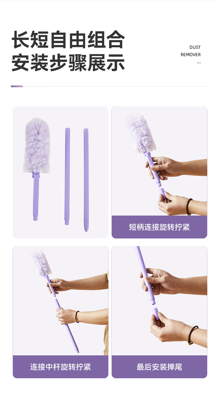 양면 먼지 제거용 극세사 청소용 솔, 길이 조절 가능, 흡착력 강한 먼지 제거용 솔, 정전기 방지, 교체 가능한 손잡이, 길이 조절 가능한 청소용 솔스토어 가기