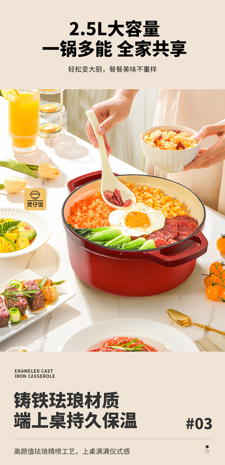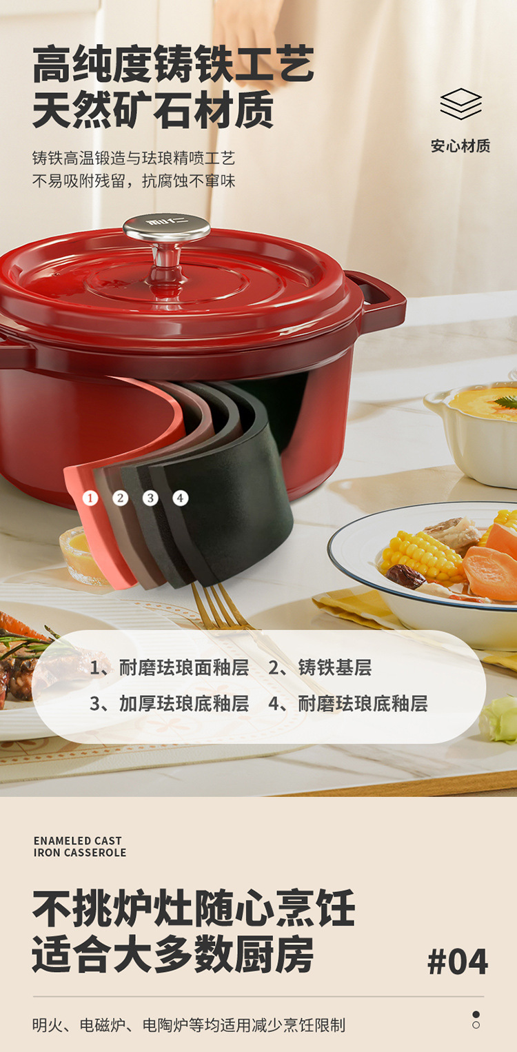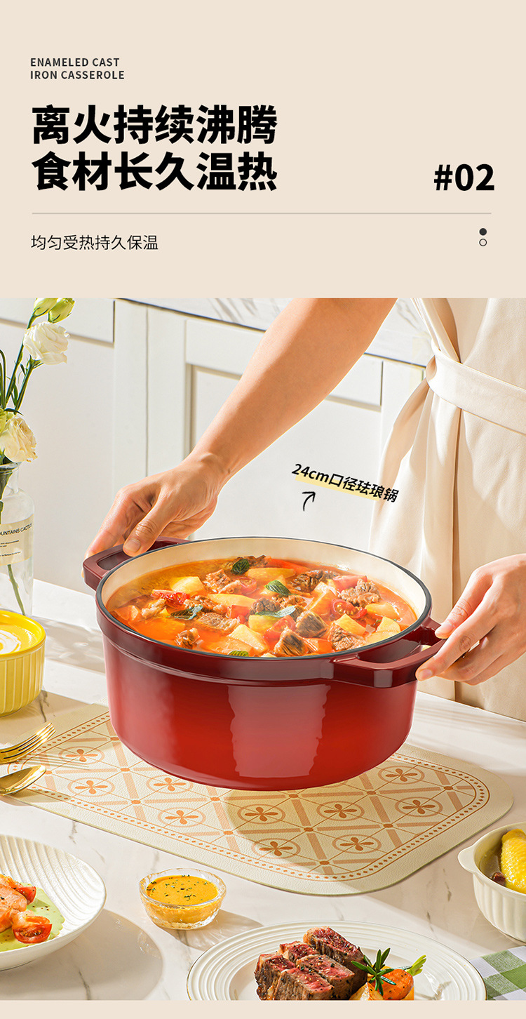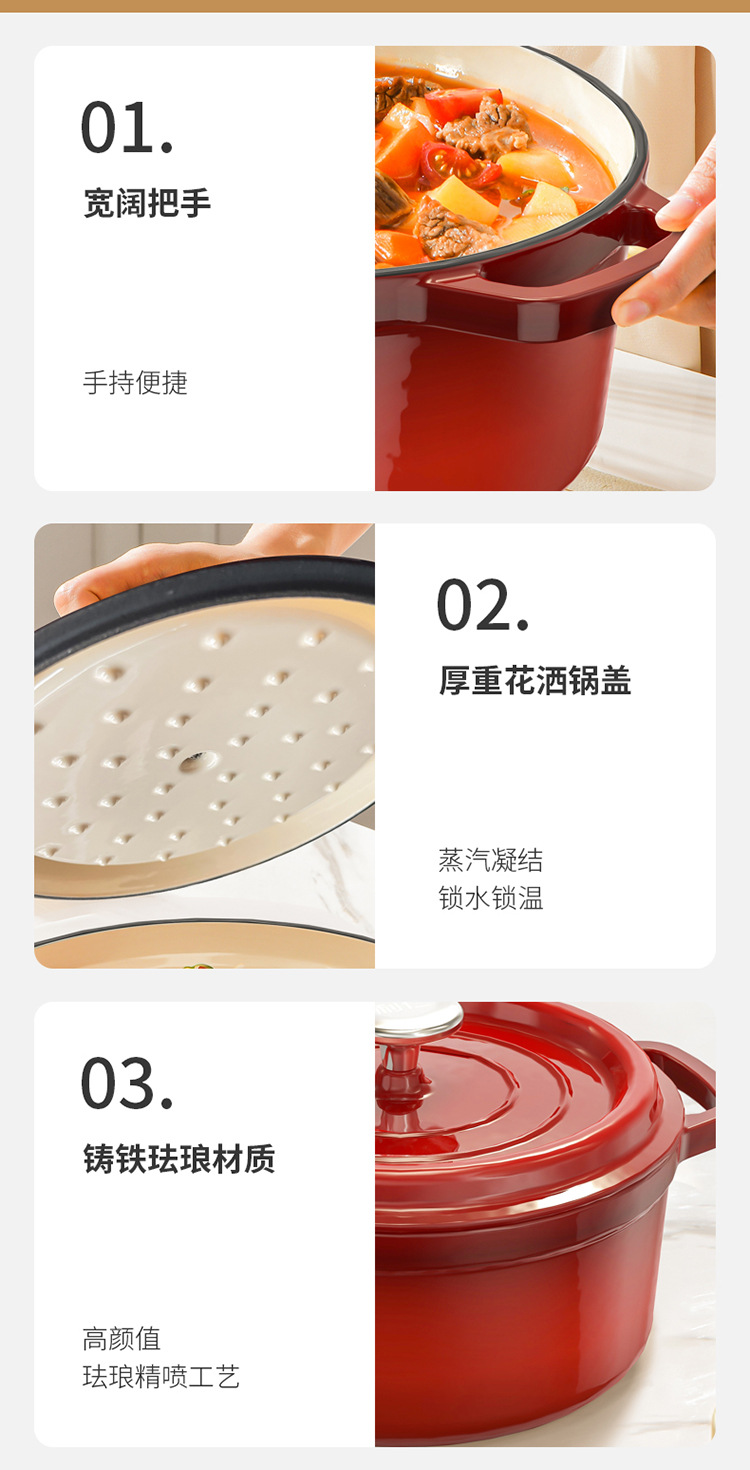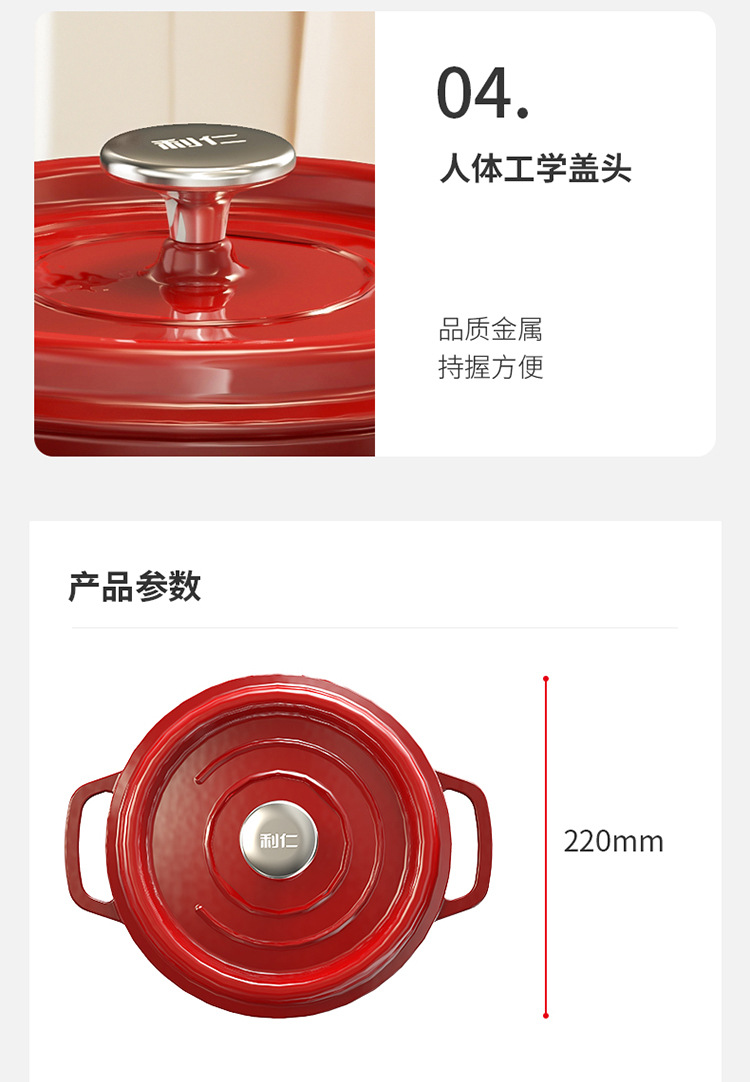 Li Ren 2.5L 에나멜 냄비 주철 냄비 가정용 스튜 냄비 캐서롤 수프 냄비 찐 냄비 유도 쿠커 가스 요리 냄비스토어 가기