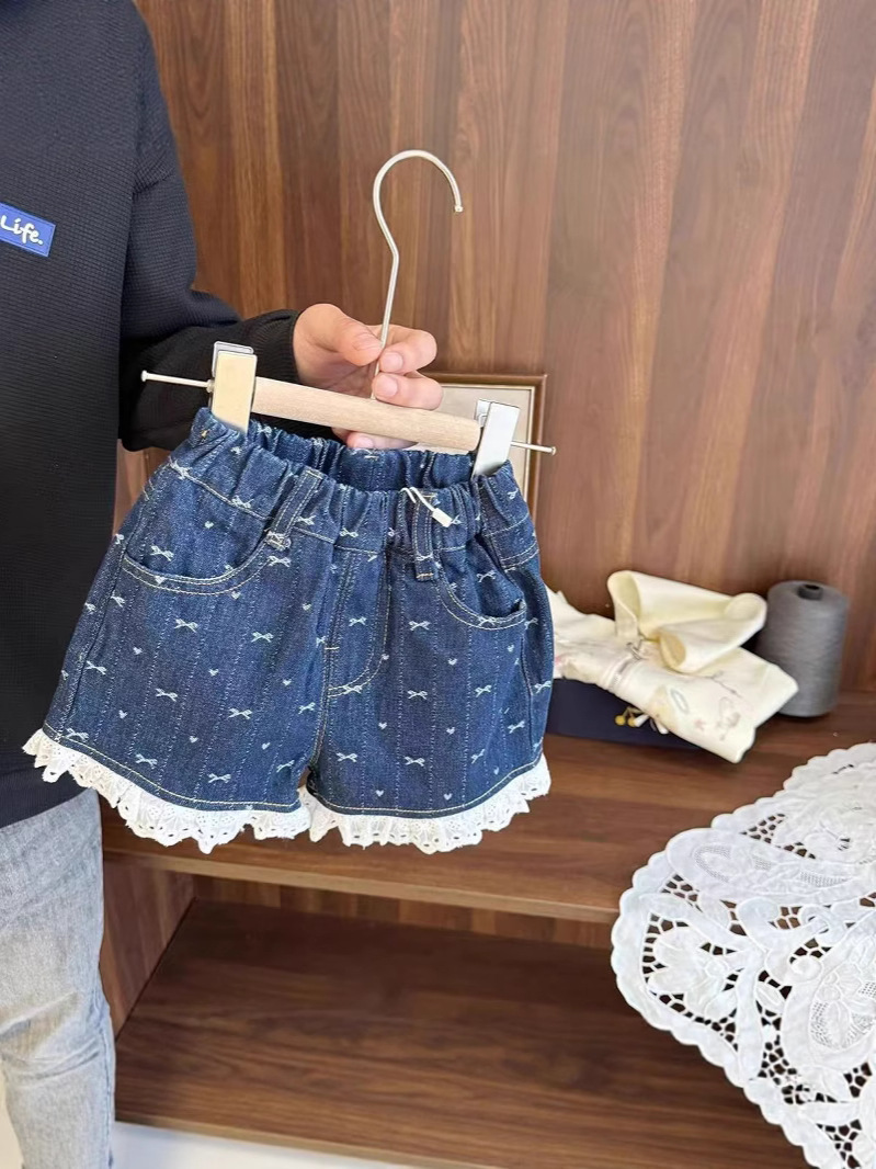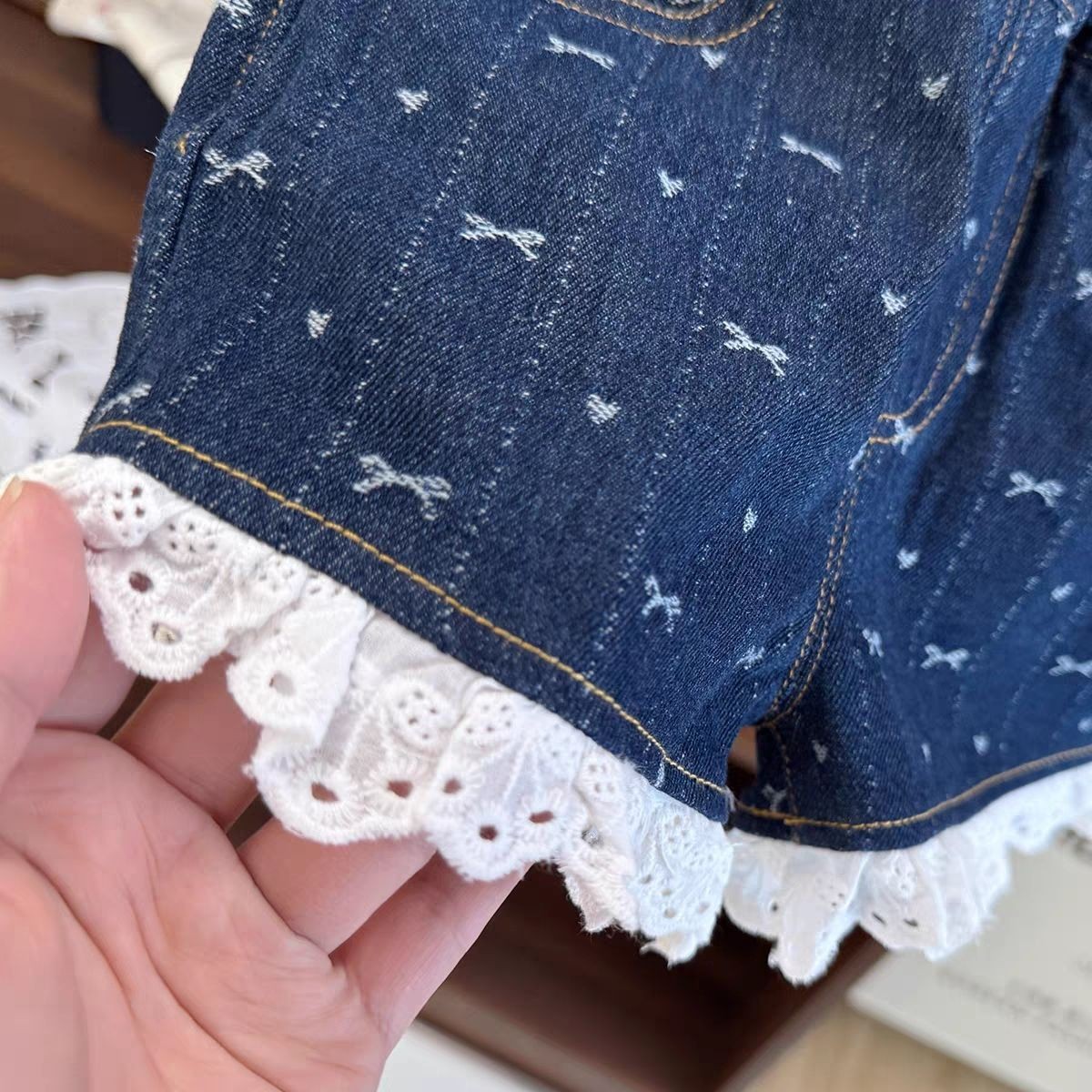 아기 소녀 유행 레이스 핫 바지 아기 소녀 여름 새 스타일 소녀 한국식 나비 데님 반바지스토어 가기
