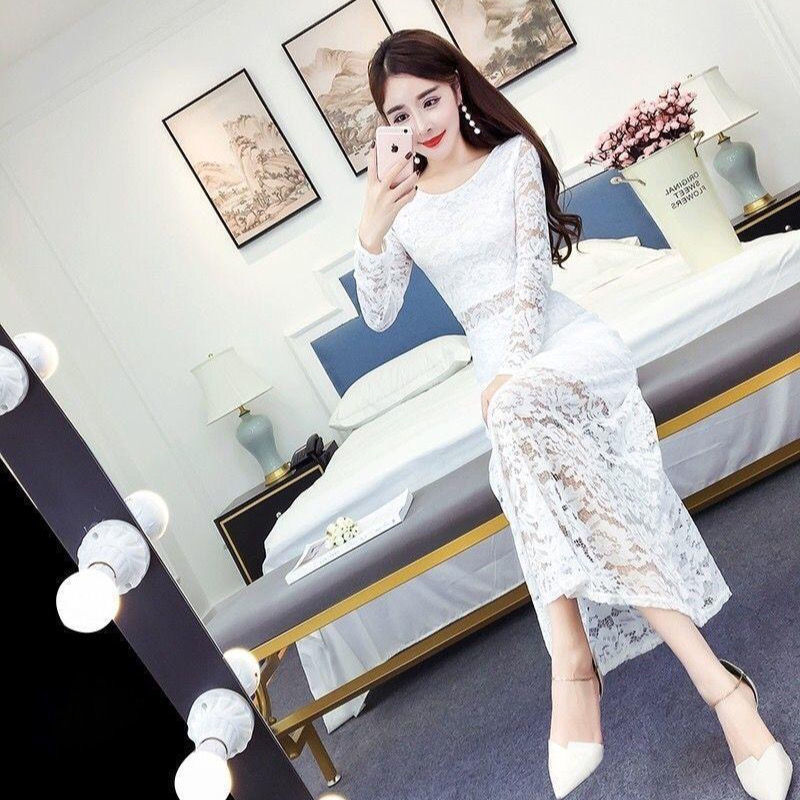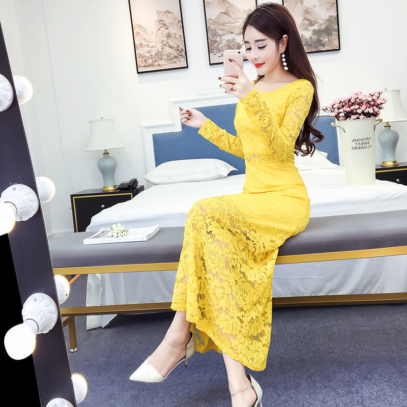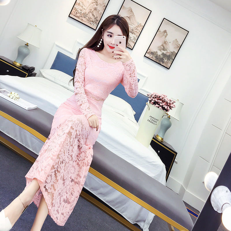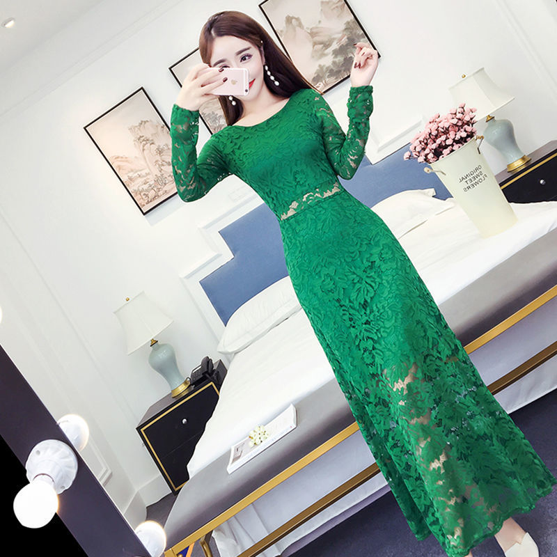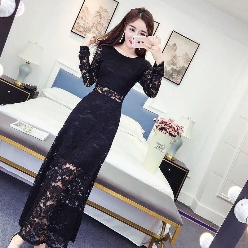 여성 우아한 레이스 원피스 여성 2025 봄과 가을 뉴 나이트 클럽 섹시한 단어 슬림 플러스 사이즈 긴 원피스스토어 가기