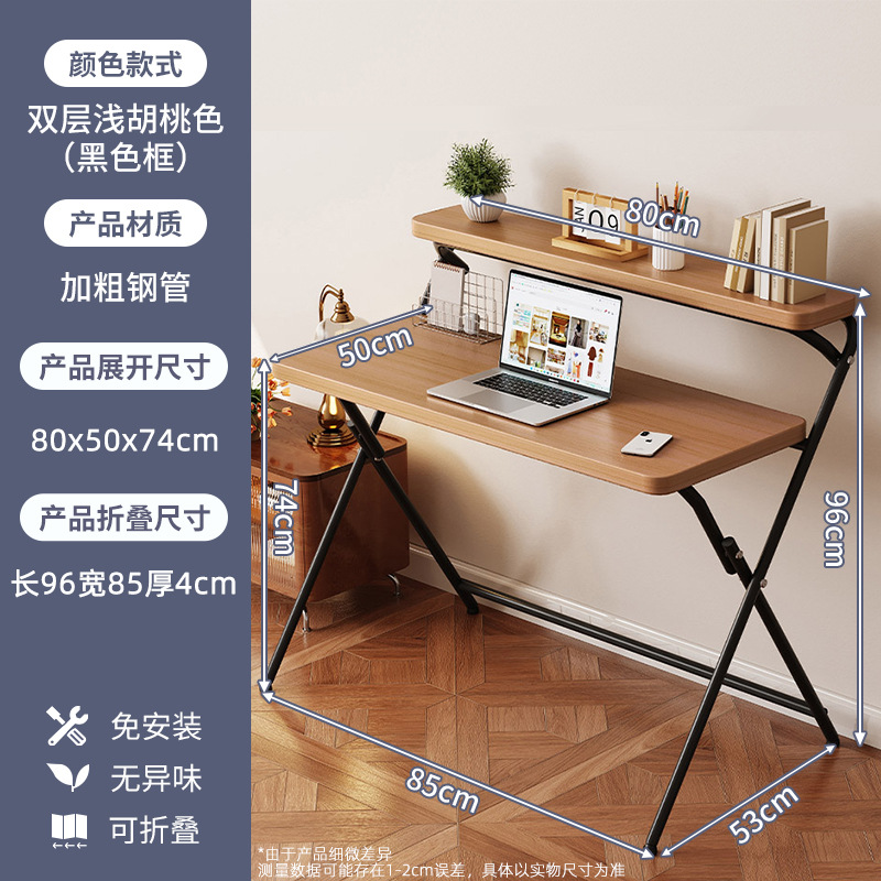 • [휴대용 더블 레이어 모델] 라이트 월넛 + 블랙 프레임 더블 레이어 80x50x96 접이식 및 설치 불필요