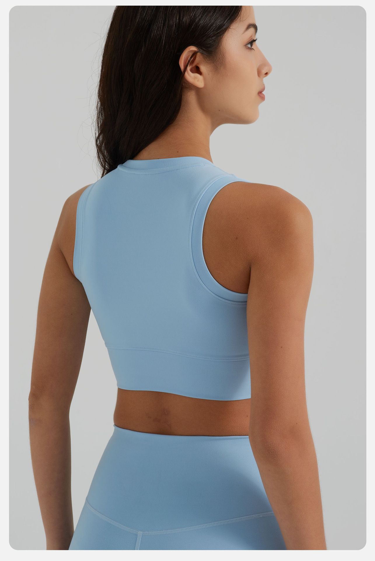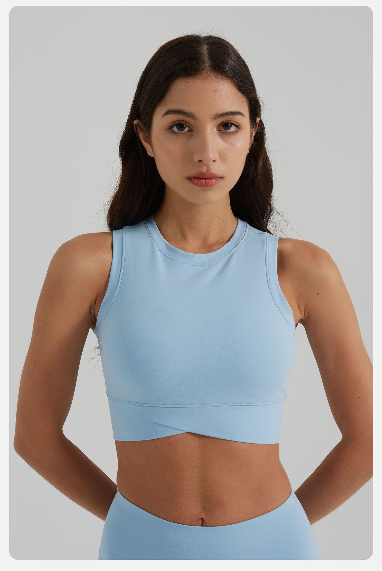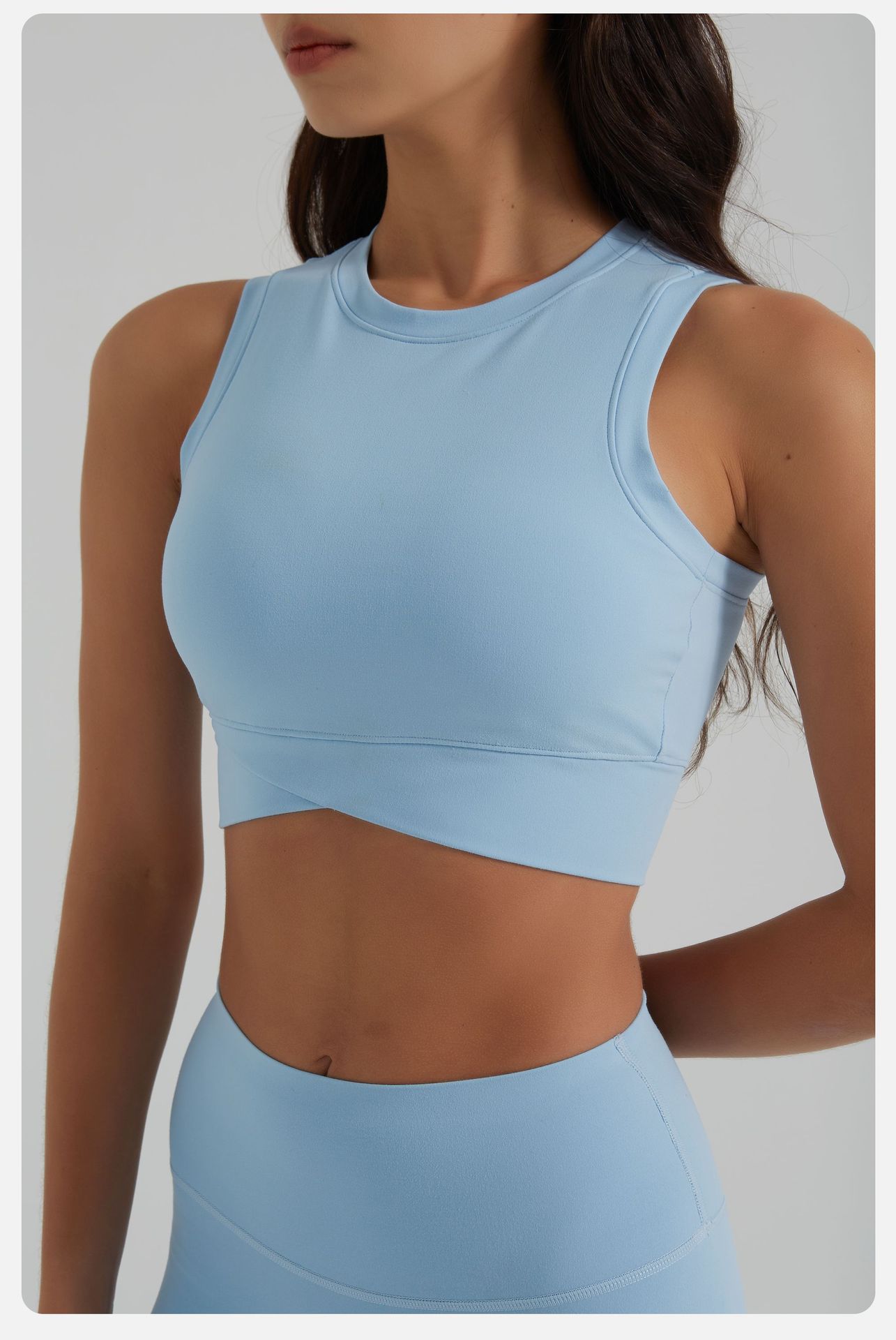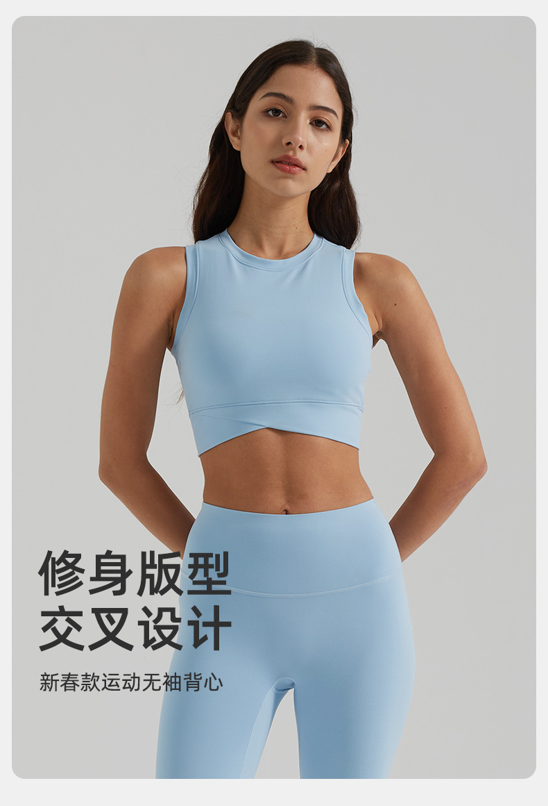여름 새로운 분리 가능한 요가 브라 여자 하이 엔드 민소매 스포츠 크로스 오버 헴 올 매치 피트니스 조끼