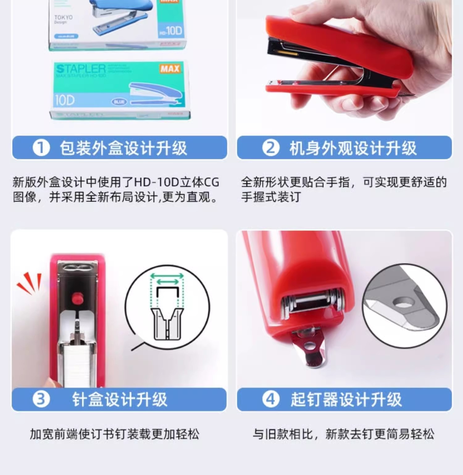 일본 맥스 스테이플러 hd-10d 사무실 테이크아웃 노동 절약형 스테이플러(학생용 스테이플 리무버 포함)스토어 가기