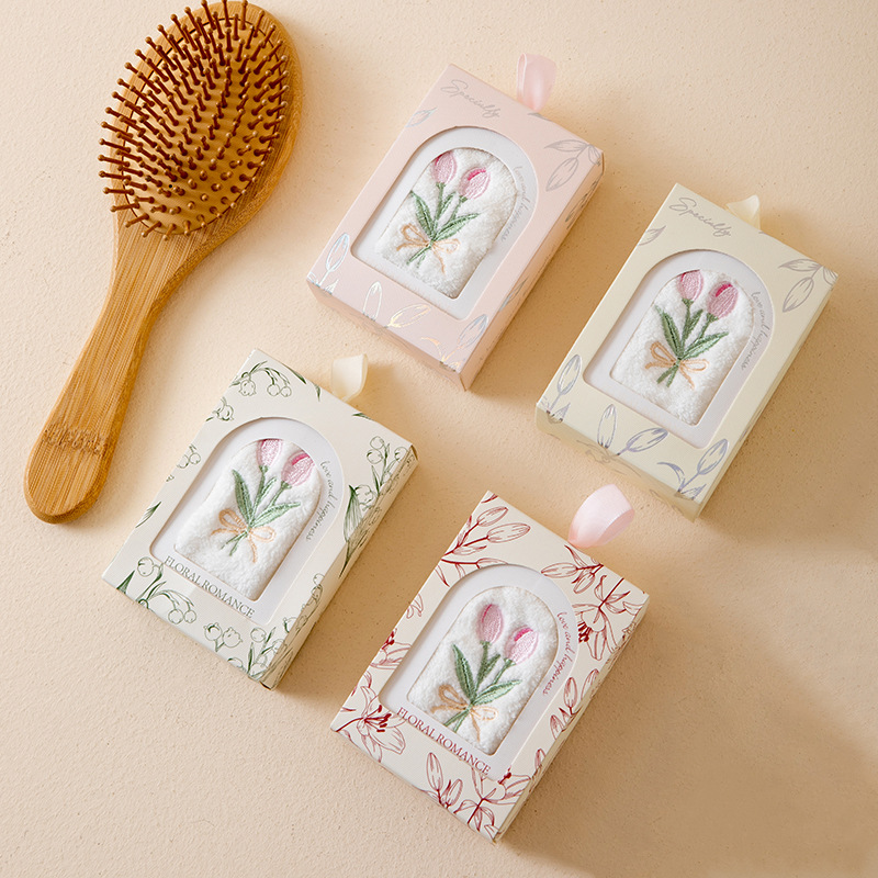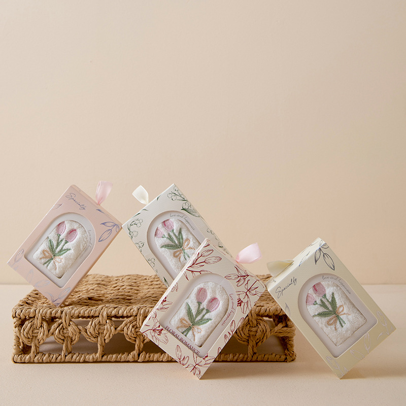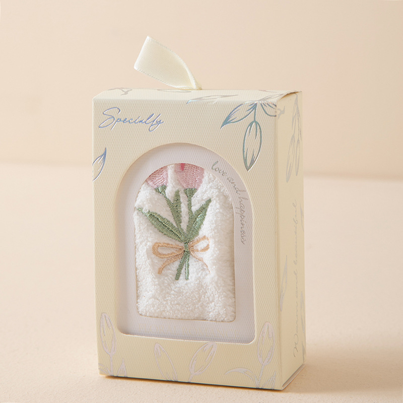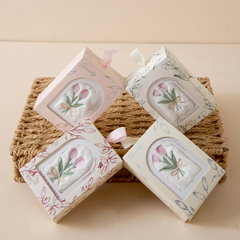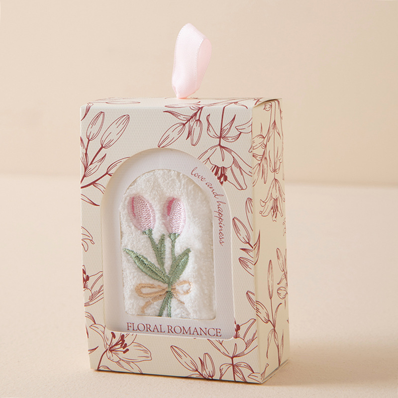 튤립 자수 스퀘어 타월 손 선물 창조적 인 결혼식 반환 선물 결혼 신부 들러리 선물 선물 선물