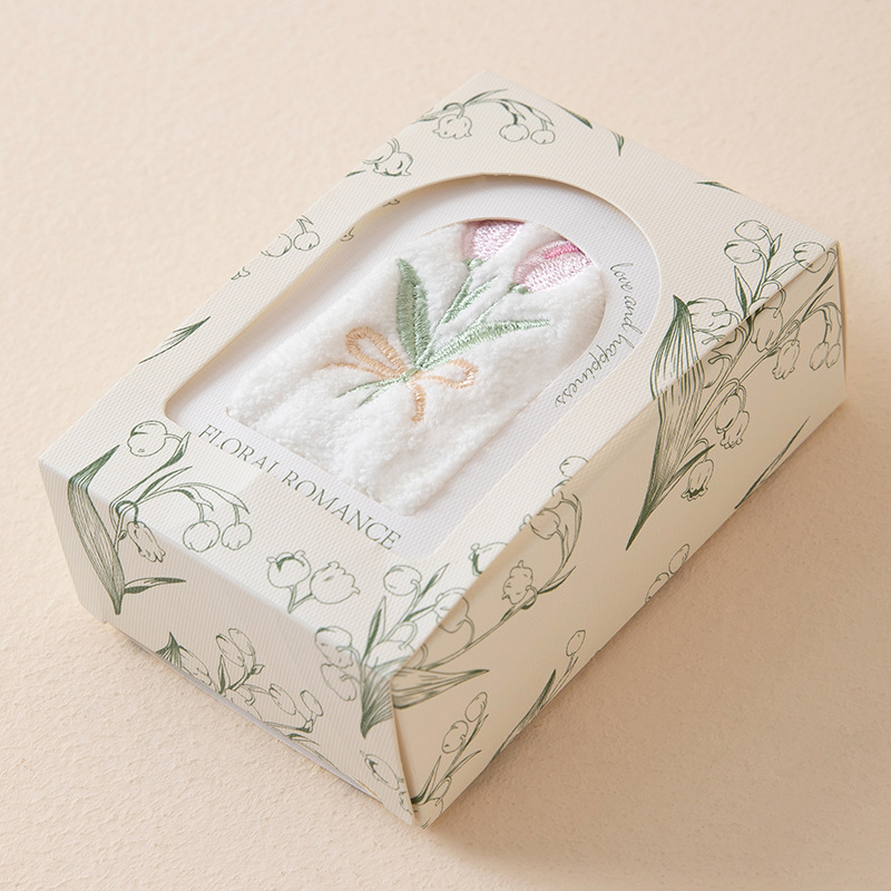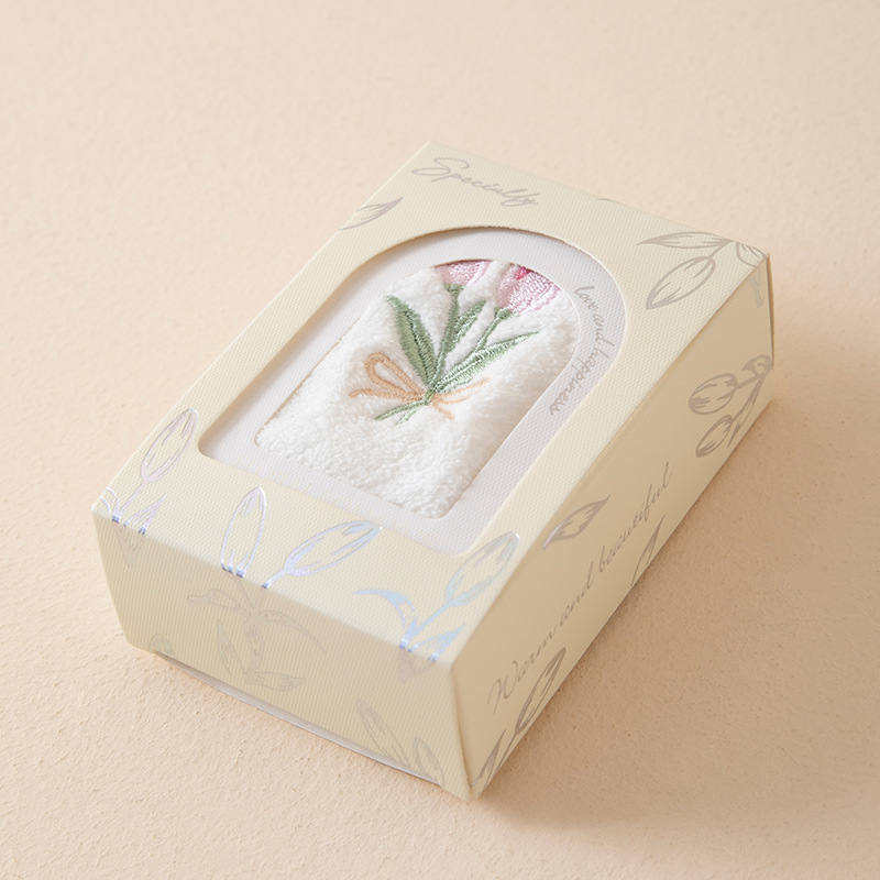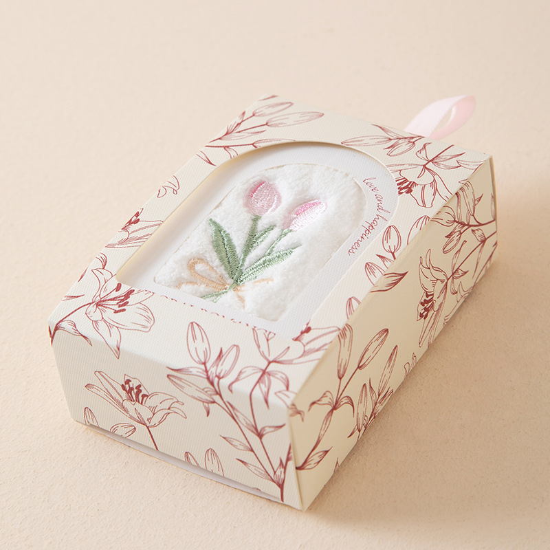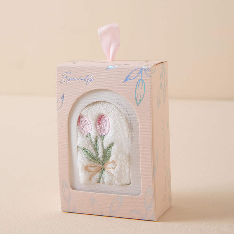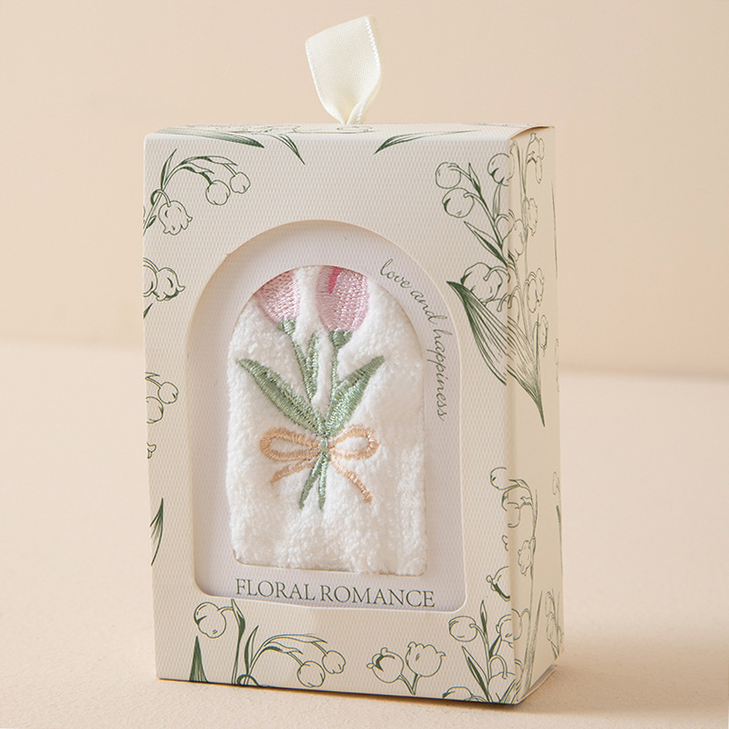 튤립 자수 스퀘어 타월 손 선물 창조적 인 결혼식 반환 선물 결혼 신부 들러리 선물 선물 선물