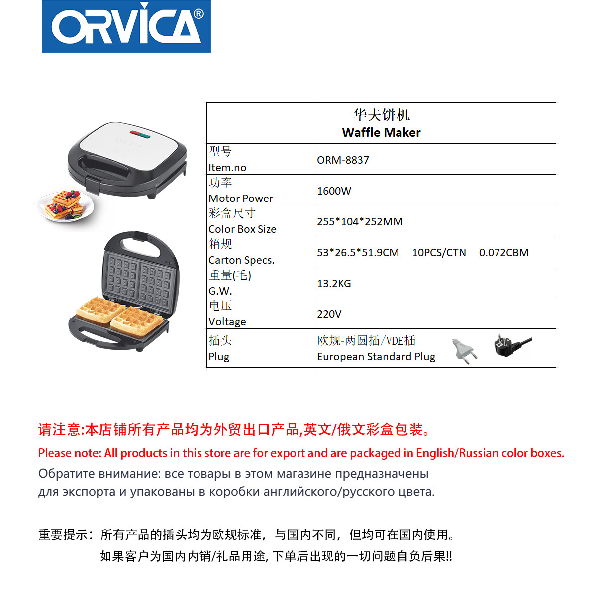 ORVICA 유럽 규격 크로스보더 샌드위치 메이커 아침 식사 메이커 양면 가열 다기능 토스트 와플