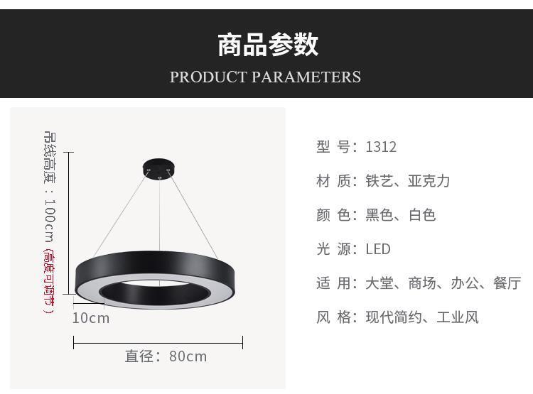 LED 원형 링 샹들리에 사무실 체육관 상점 인터넷 연예인 원형 간단한 램프 거실 현대 램프