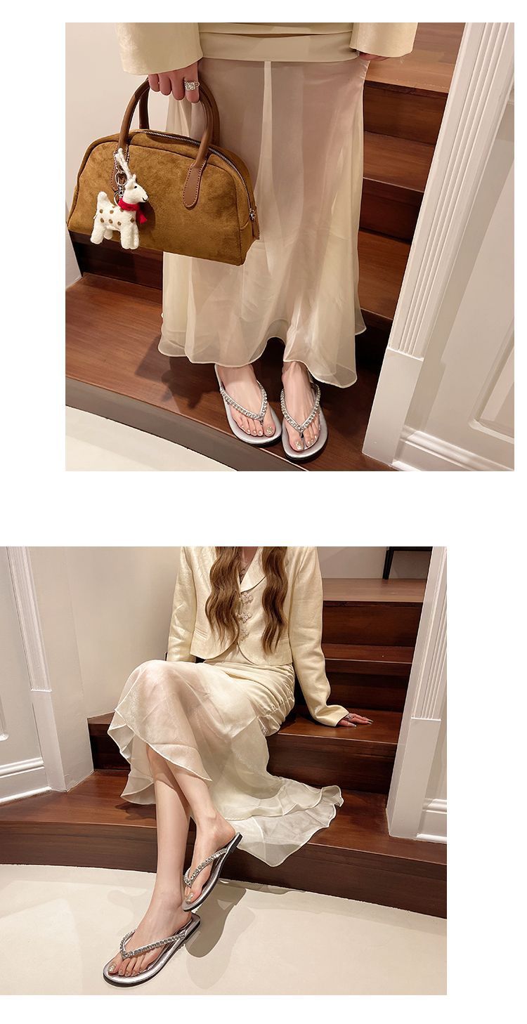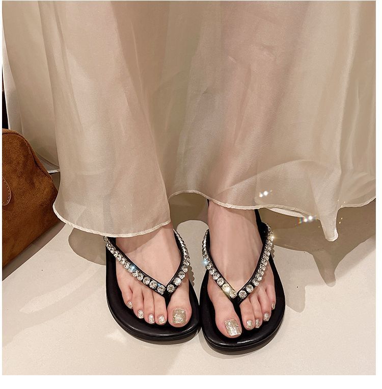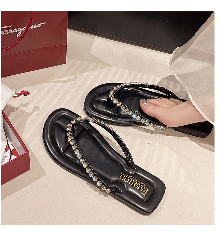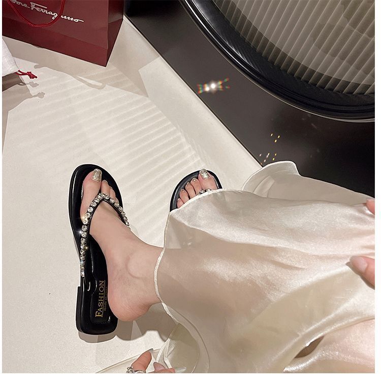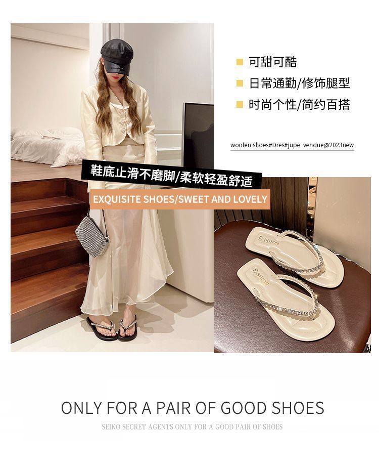 [3691명이 즐겨찾고 있는] 여름 아우터로 입기 좋은 여성용 페어리 스타일 슬리퍼, 스커트와 잘 어울리는 니치 패션 라인스톤, 인터넷 연예인