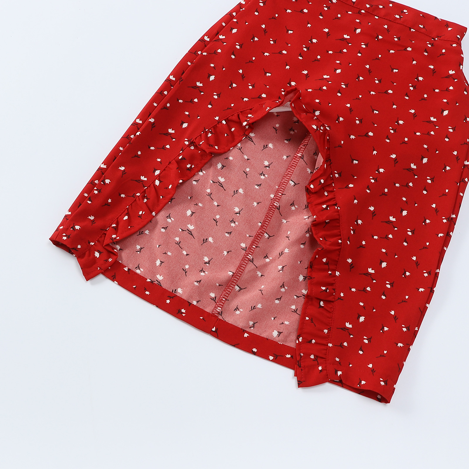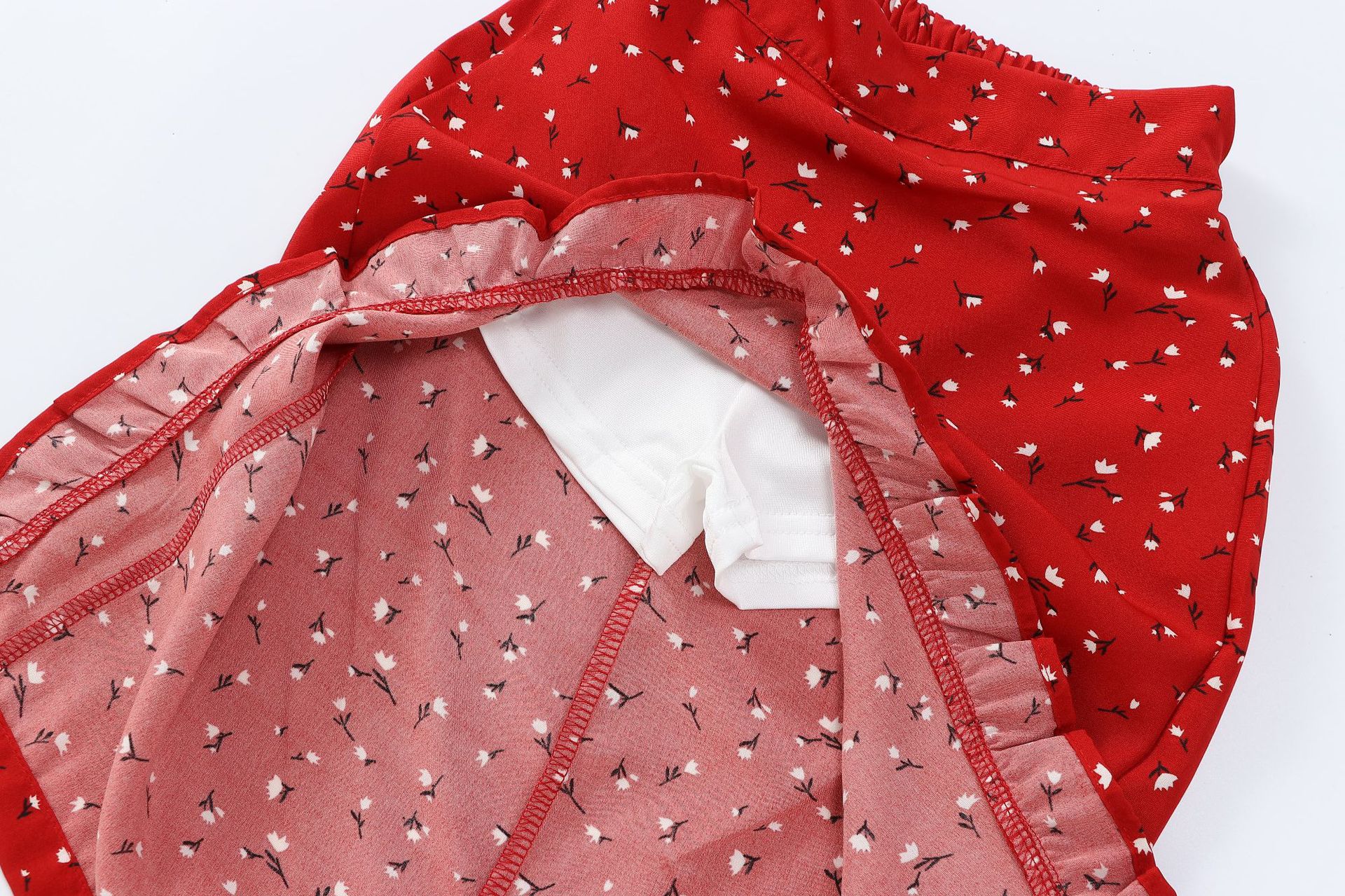 레드 불규칙한 꽃 반 길이 원피스 소녀 여름 2025 작은 남자를위한 새로운 스타일 봄 원피스스토어 가기