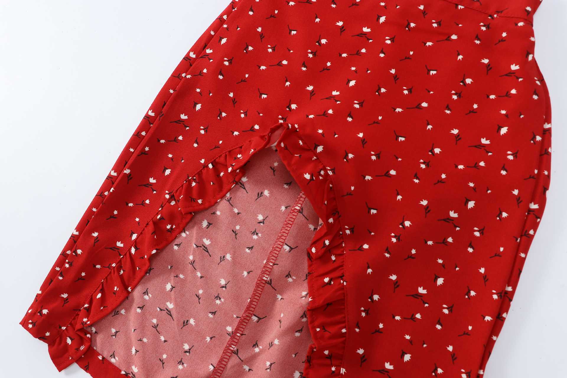 레드 불규칙한 꽃 반 길이 원피스 소녀 여름 2025 작은 남자를위한 새로운 스타일 봄 원피스