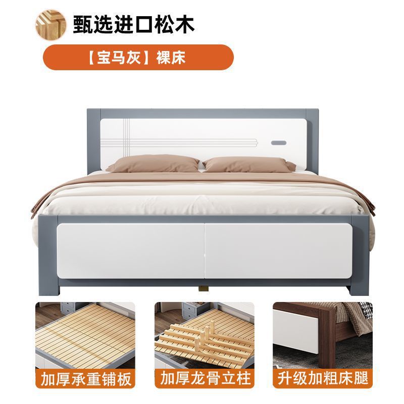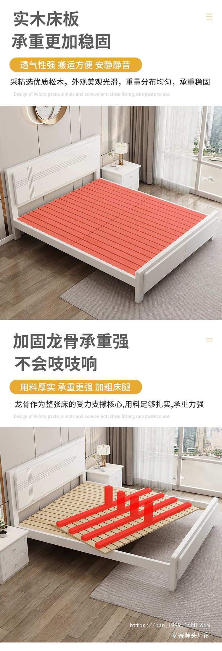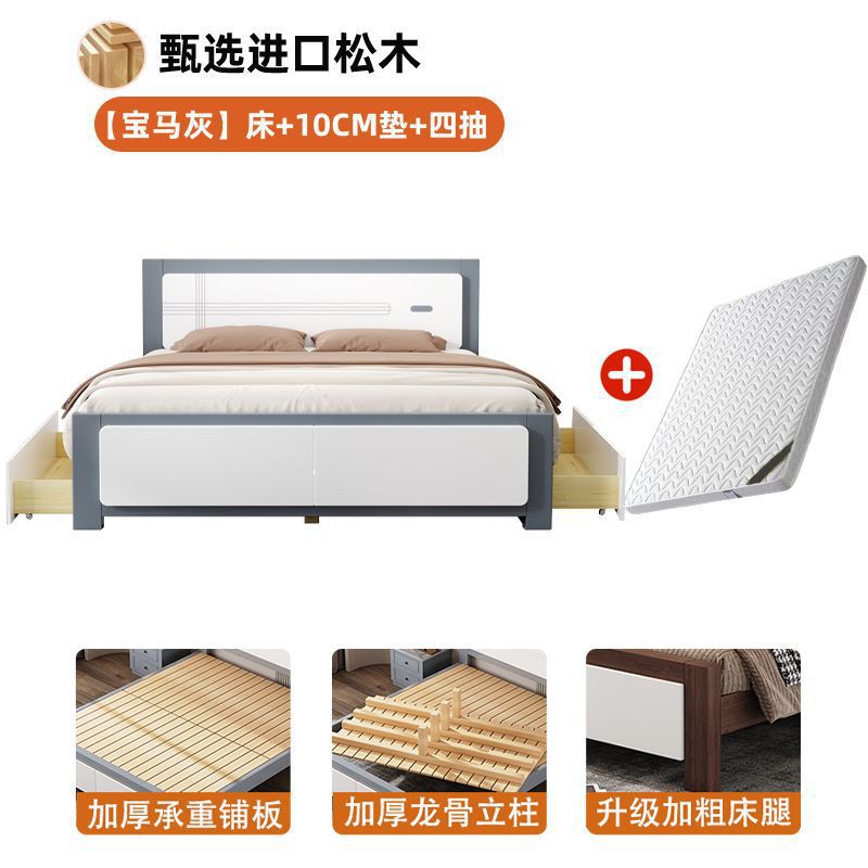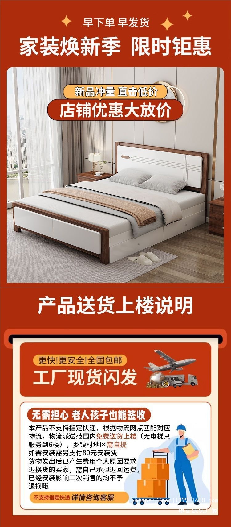 모든 원목 침대, 심플한 원목 침대, 모던 더블 침대, 마스터 침실 대형 침대 1.5m 홈 1.8 수납 침대 웨딩 침대스토어 가기