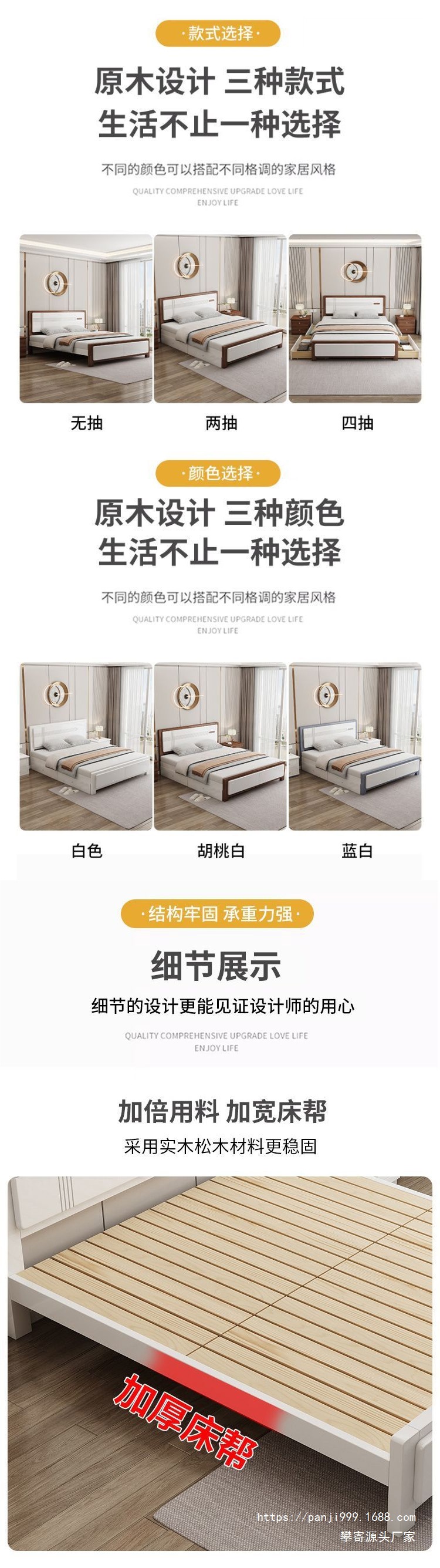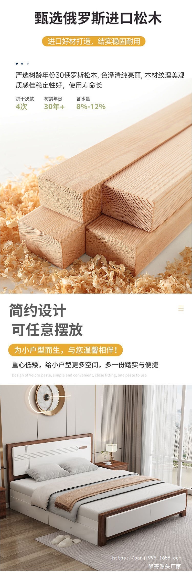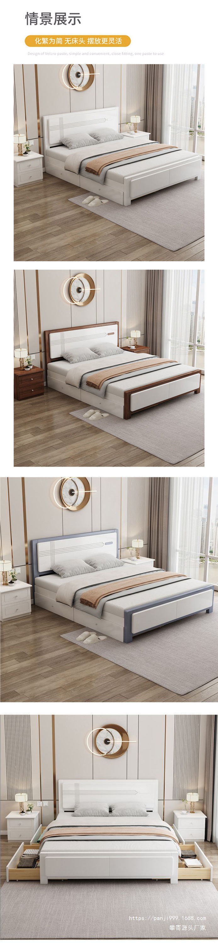 모든 원목 침대, 심플한 원목 침대, 모던 더블 침대, 마스터 침실 대형 침대 1.5m 홈 1.8 수납 침대 웨딩 침대스토어 가기