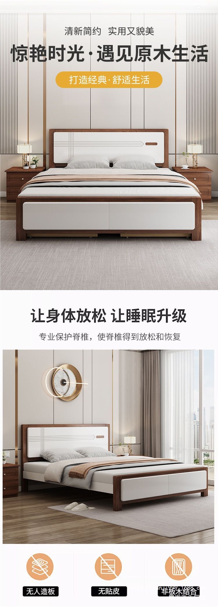 모든 원목 침대, 심플한 원목 침대, 모던 더블 침대, 마스터 침실 대형 침대 1.5m 홈 1.8 수납 침대 웨딩 침대