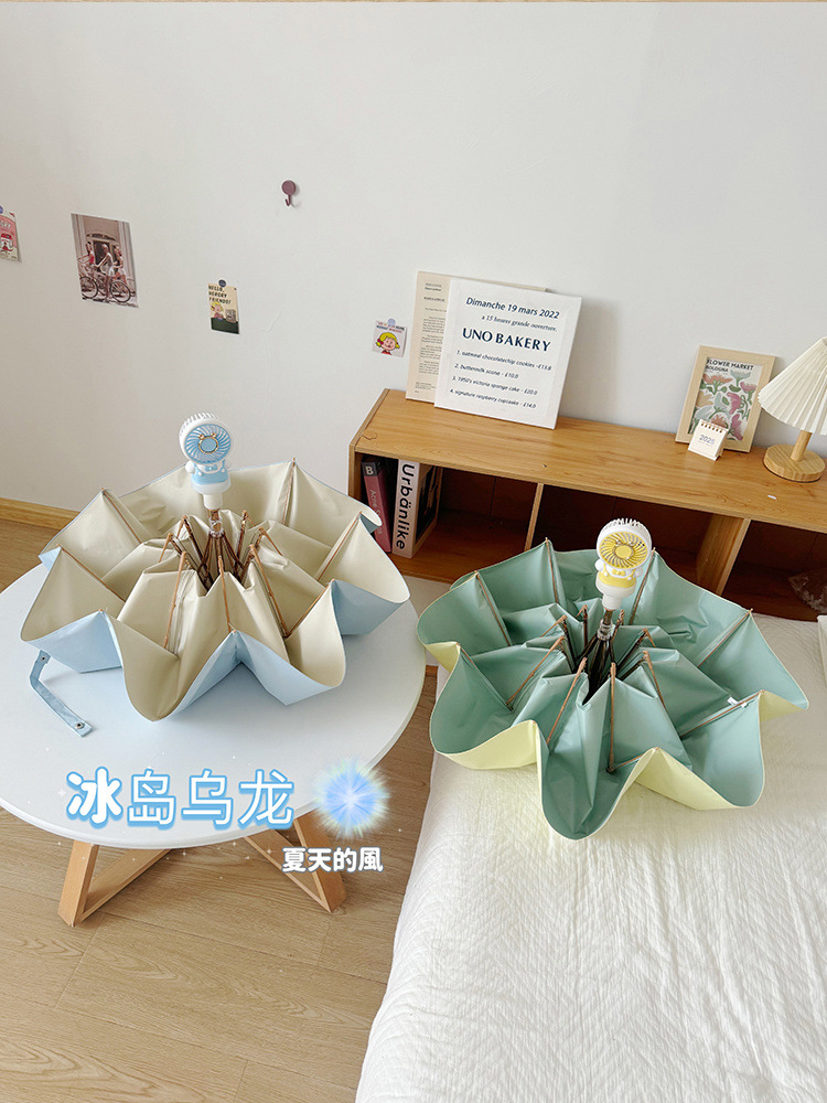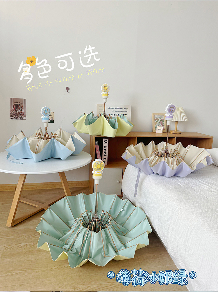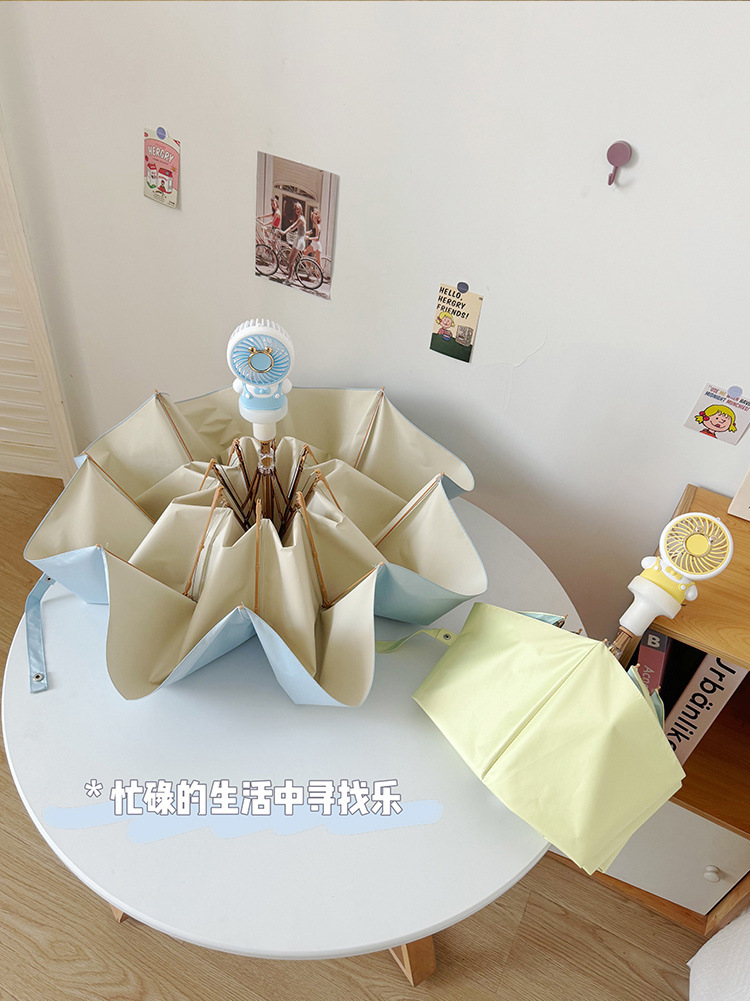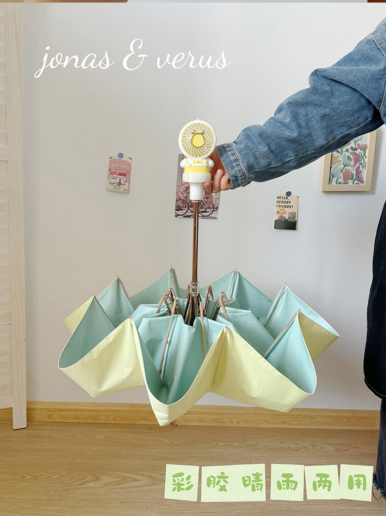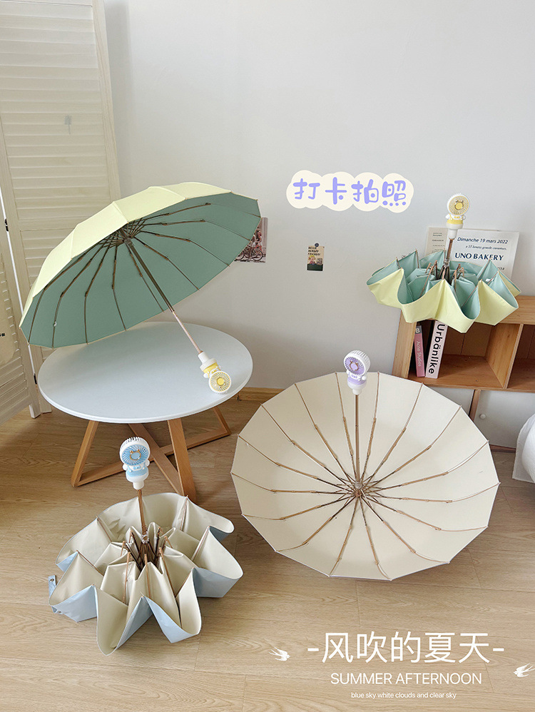 여름 팬 우산 두꺼운 태양 우산 슈퍼 태양 보호 UV 보호 파라솔 접이식 비 또는 샤인