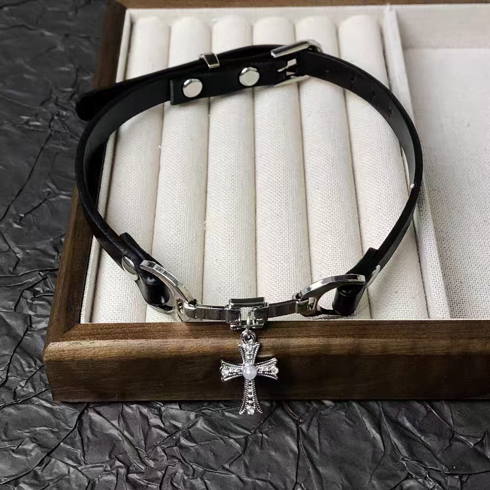 어두운 금속 나비 크로스 가죽 칼라 틈새 디자인 센스 퍼플 다이아몬드 나비 펜던트 목걸이 초커 여성스토어 가기