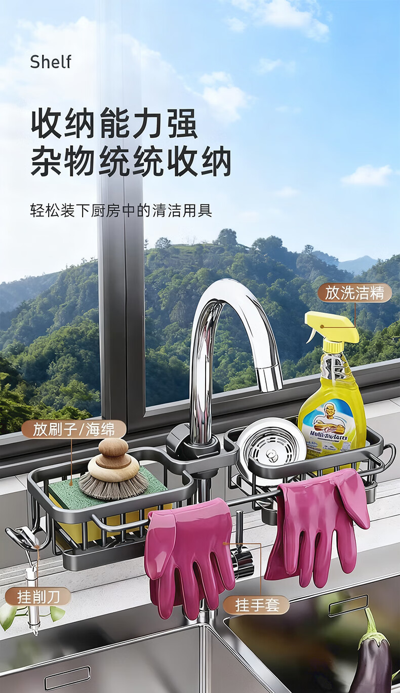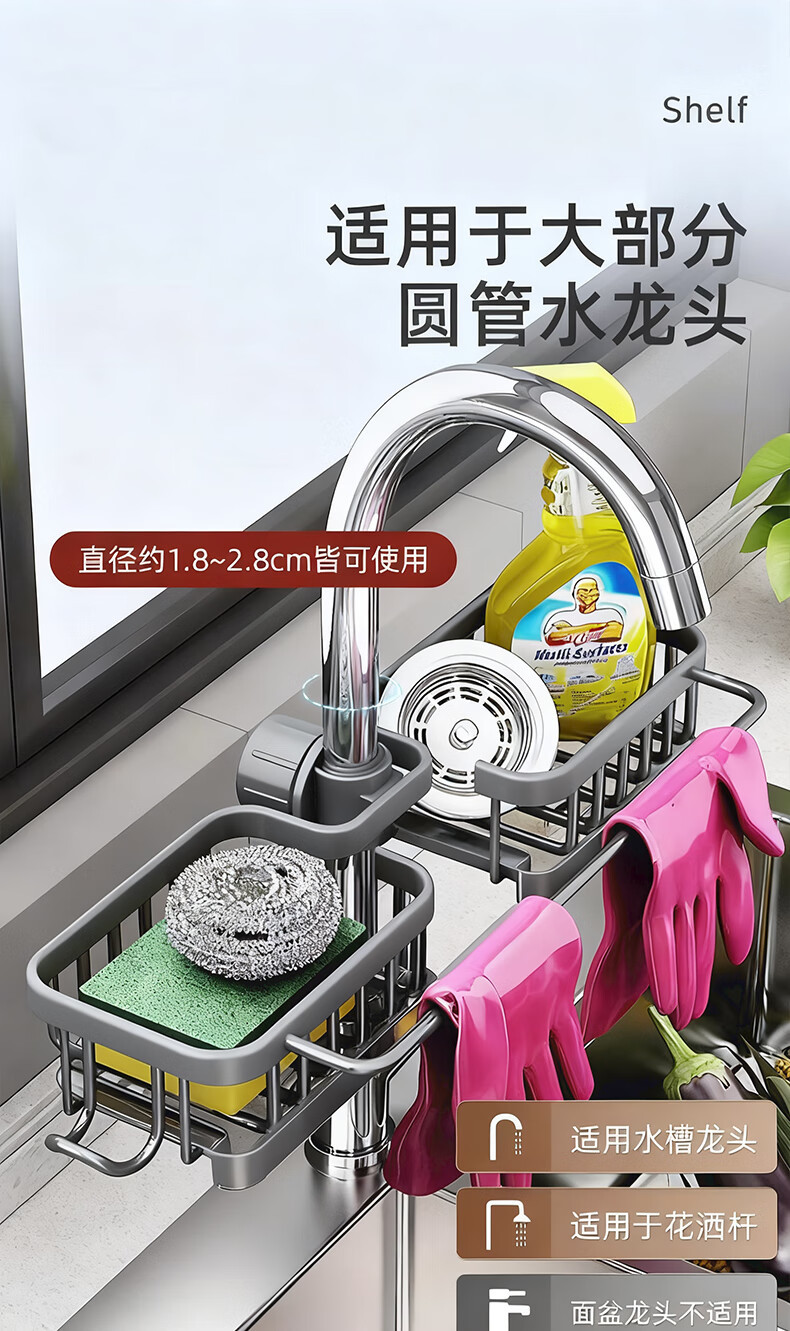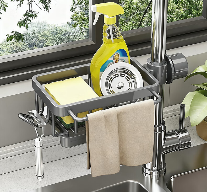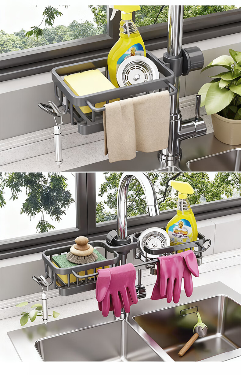 주방 수도꼭지 수납 선반, 식기 세척대, 싱크대 선반, 배수 바구니, 스펀지 브러시, 수세미, 걸레 수납 선반