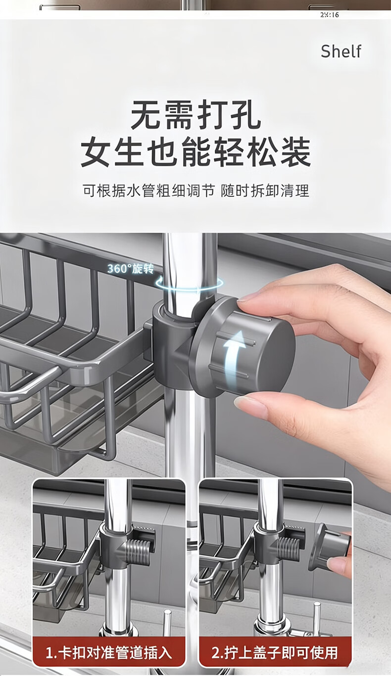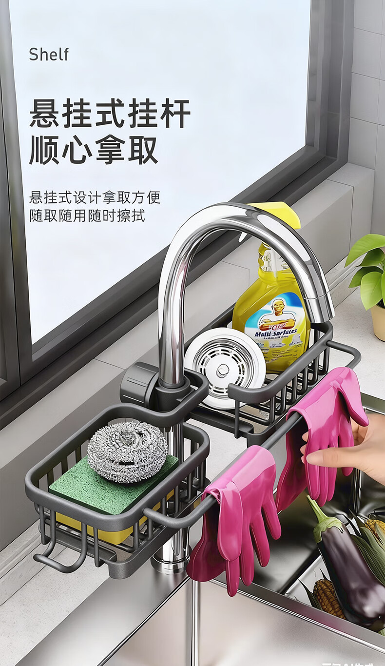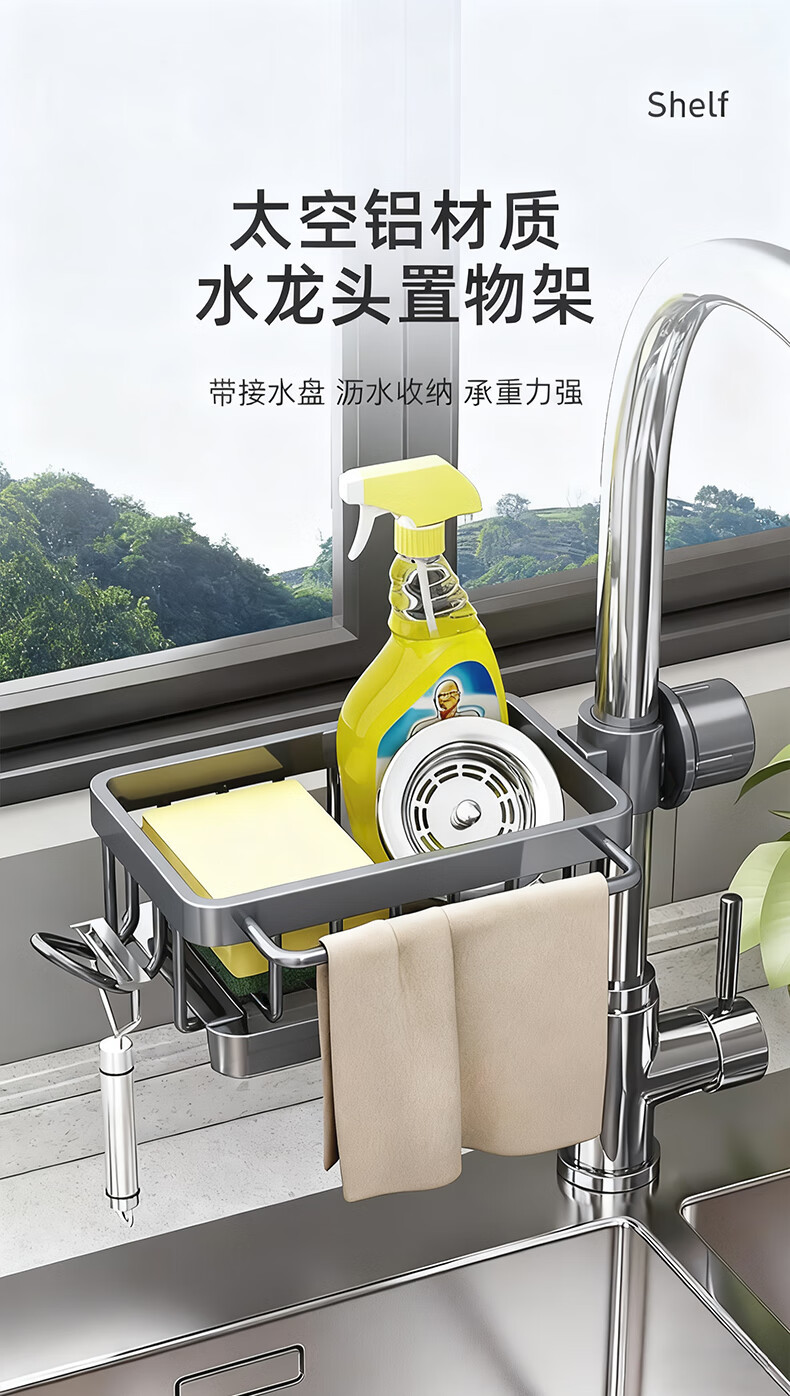 주방 수도꼭지 수납 선반, 식기 세척대, 싱크대 선반, 배수 바구니, 스펀지 브러시, 수세미, 걸레 수납 선반