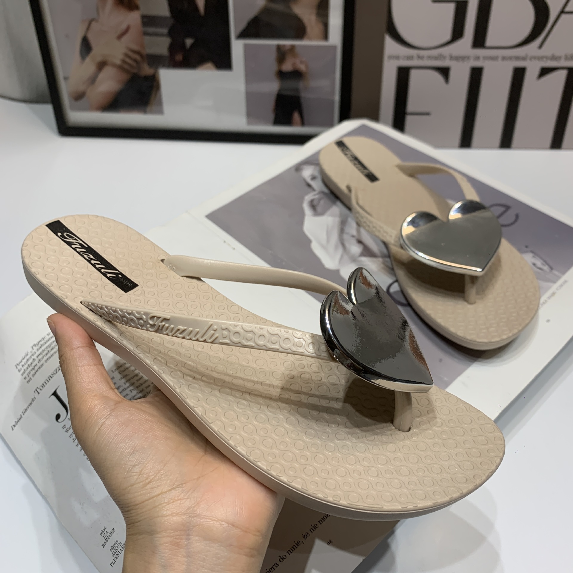 여성을위한 새로운 스타일 플립 플롭 여름 겉옷 캐주얼 플랫 플립 플롭 달콤한 사랑 비치 샌들 도매