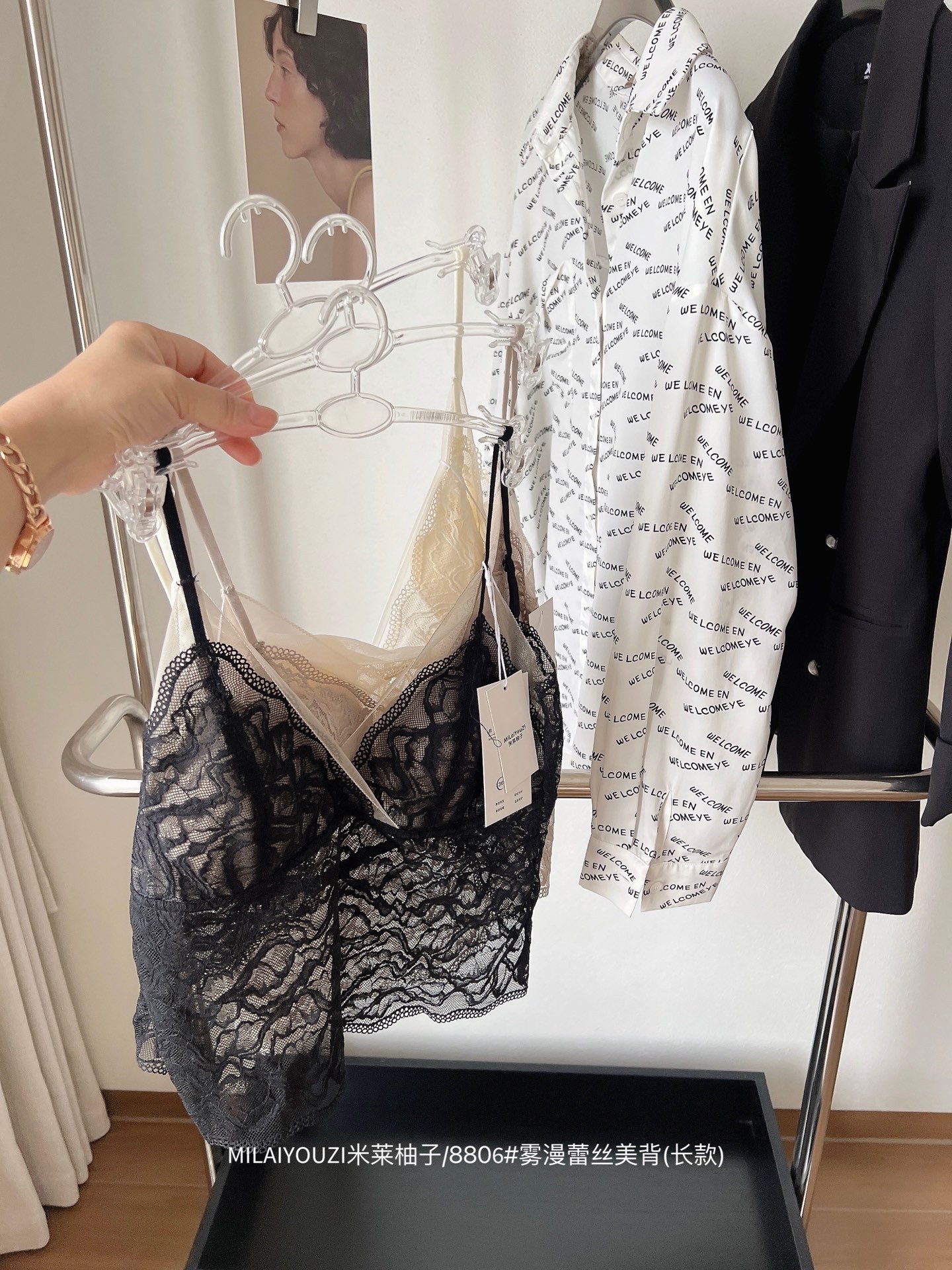 8806 프렌치 레이스 아름다운 등 긴 캐미솔 여성 고양이 발톱 컵 통기성 와이어 프리 조끼 여름용 베이스 레이어스토어 가기