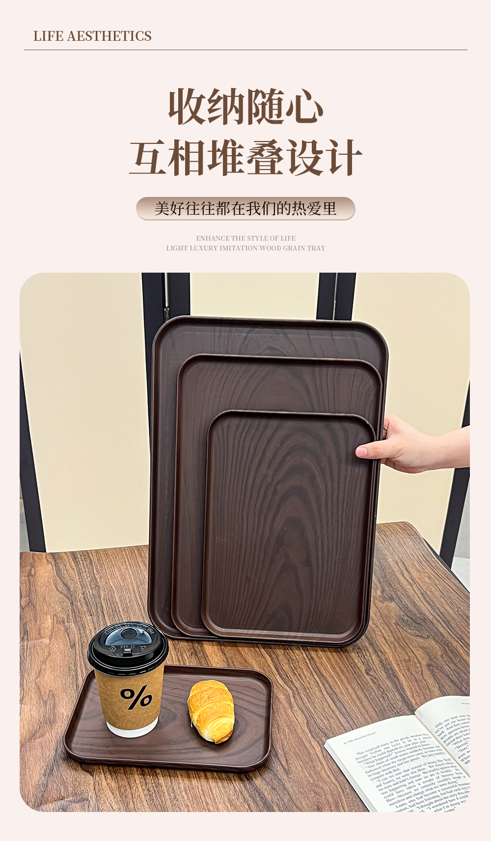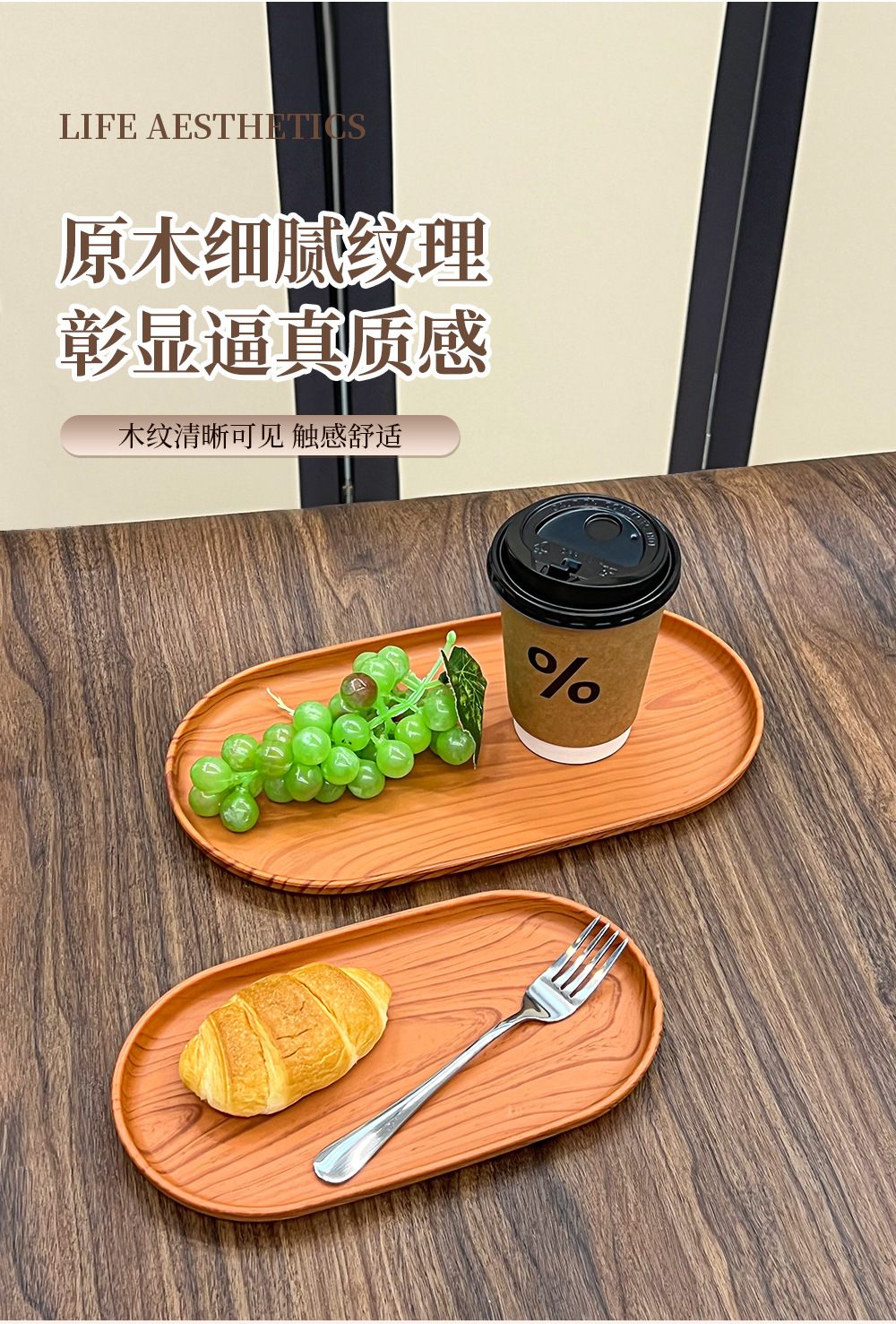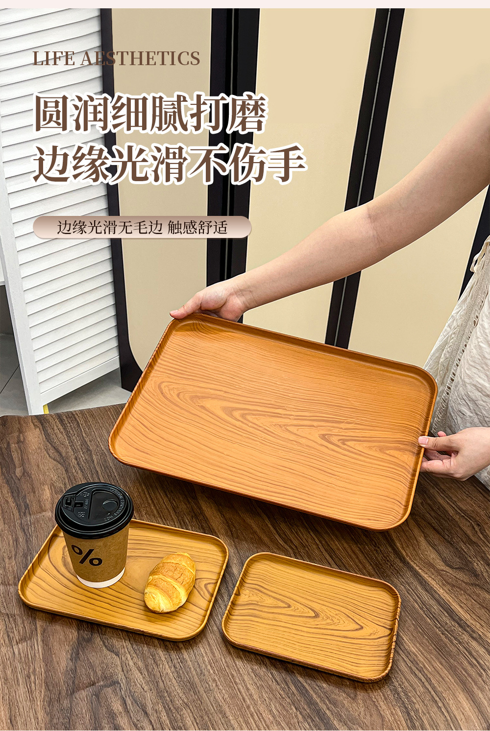 일본 직사각형 모조 나뭇결 트레이 스타일 디너 트레이 차 트레이 가정용 물컵 보관 트레이 카페 케이크 트레이스토어 가기