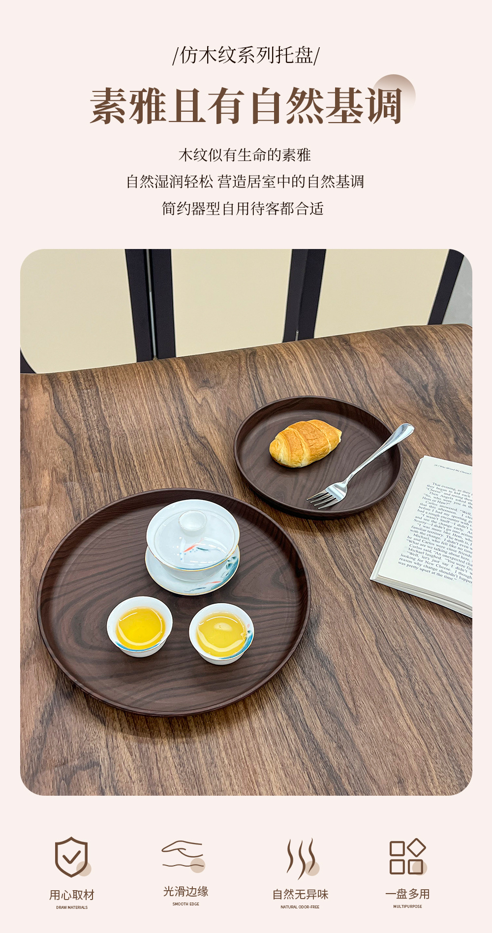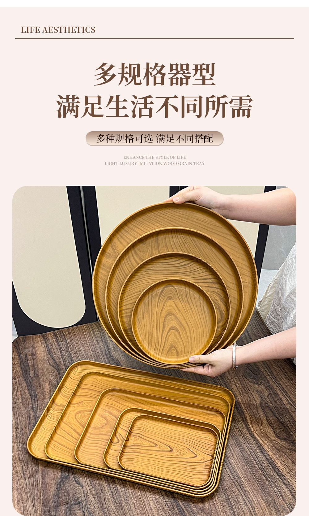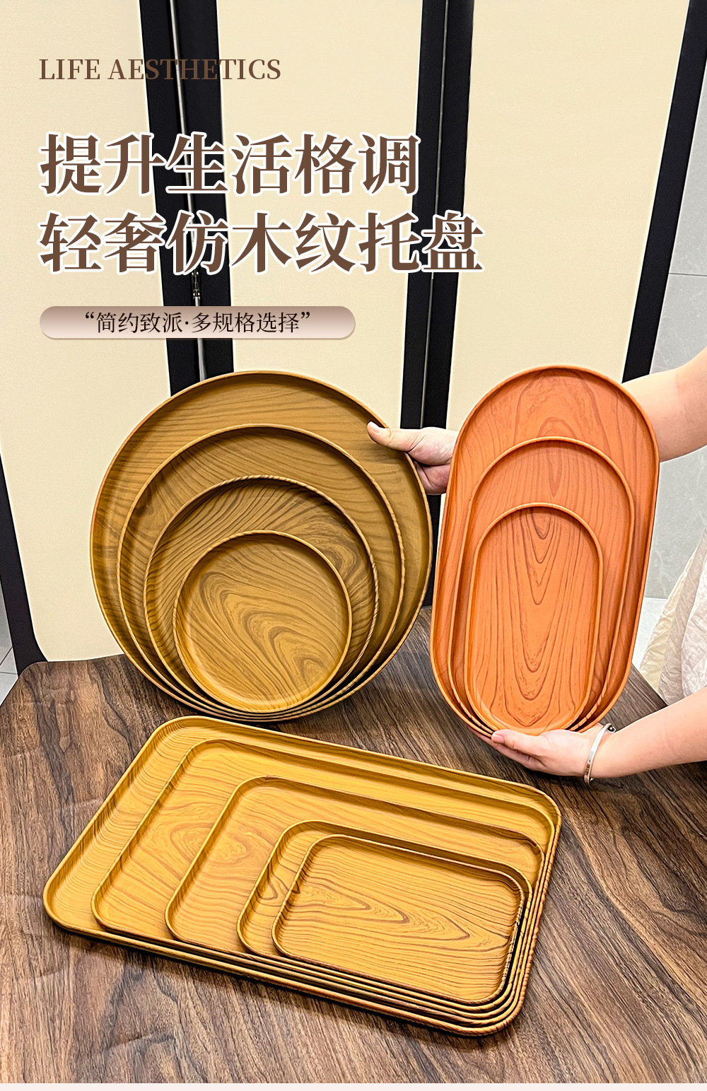 일본 직사각형 모조 나뭇결 트레이 스타일 디너 트레이 차 트레이 가정용 물컵 보관 트레이 카페 케이크 트레이