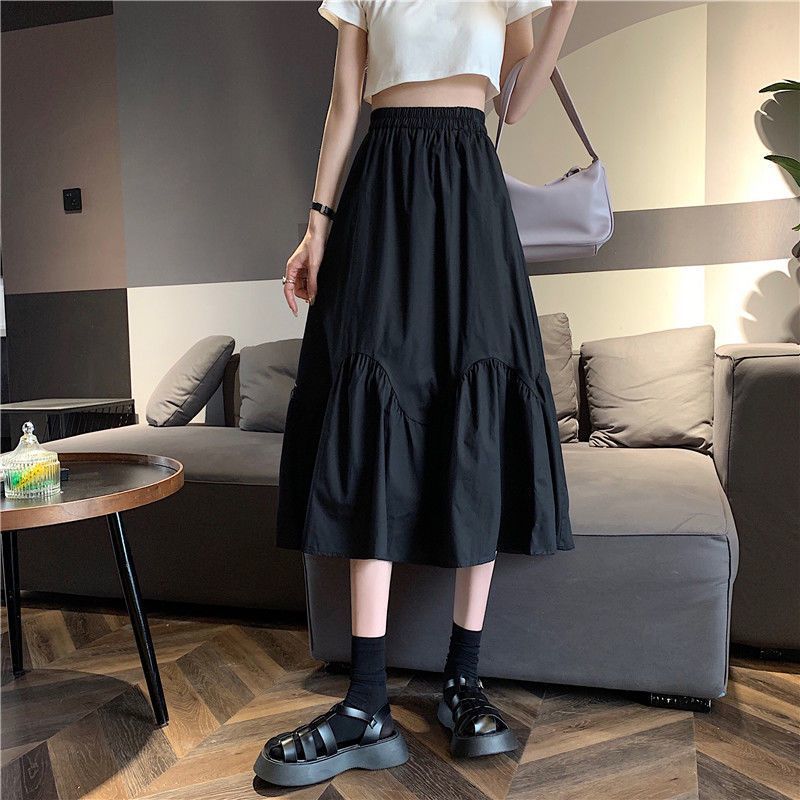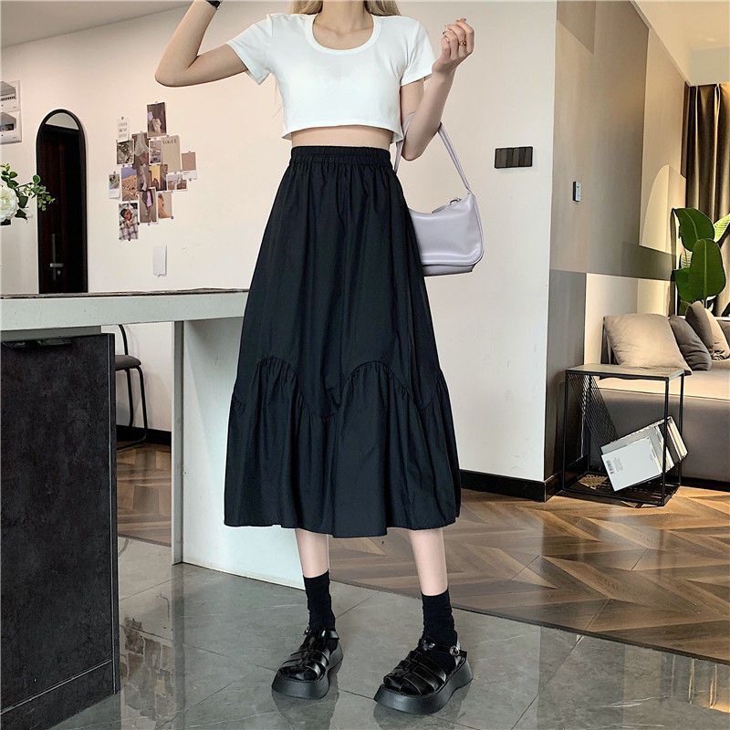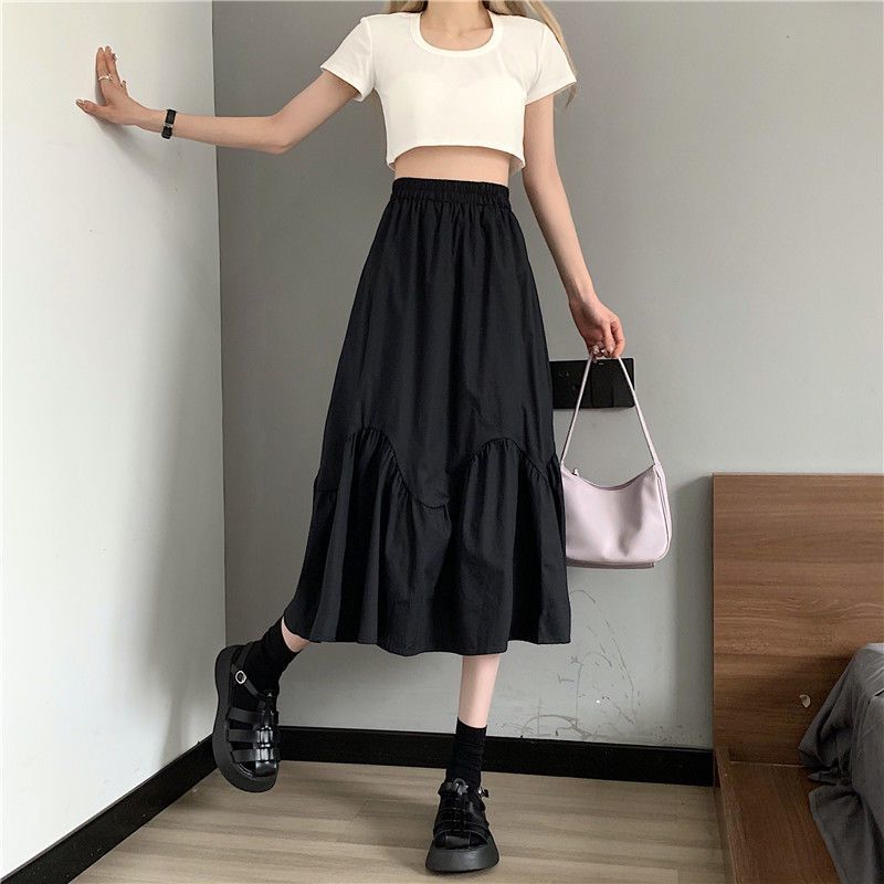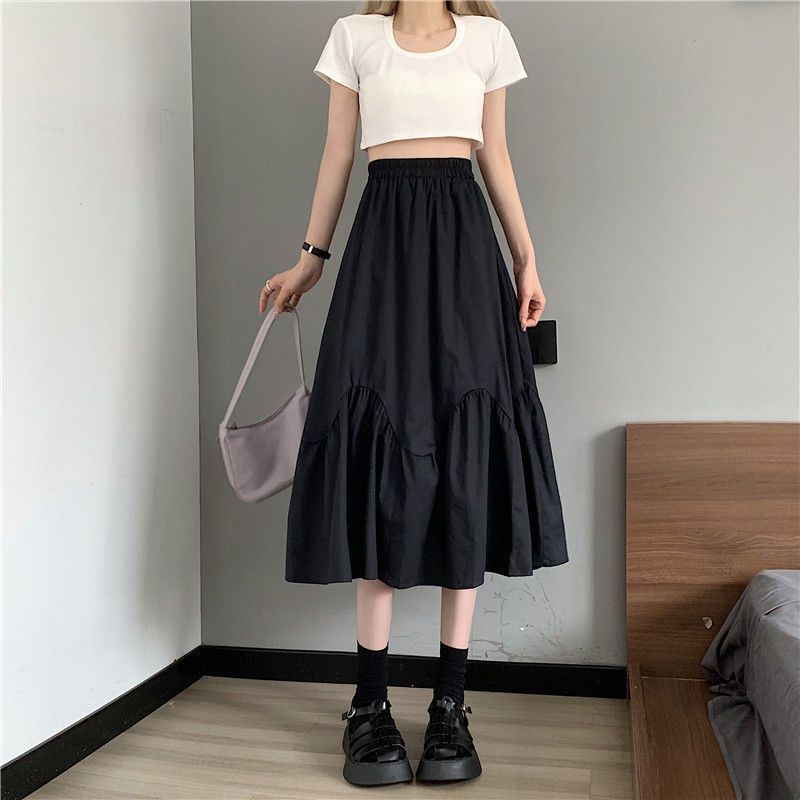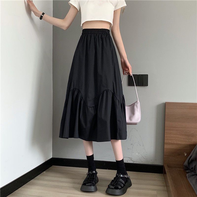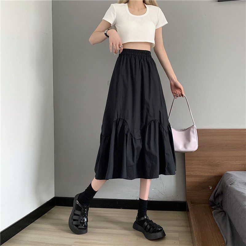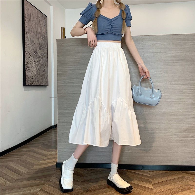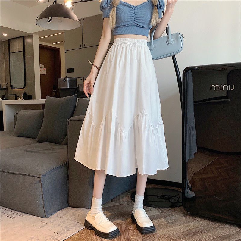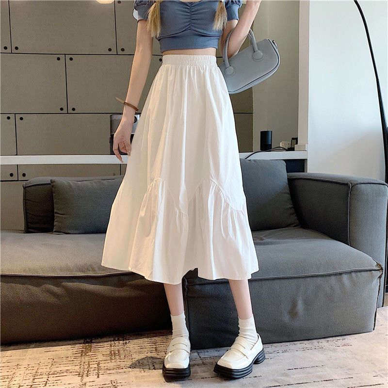 2023년 여름 새로운 스타일의 하이웨이스트 루즈 슬리밍 우산 스커트 퓨어 러블리 스타일 스커트 여성용 화이트 A라인 중간 길이 스커트스토어 가기
