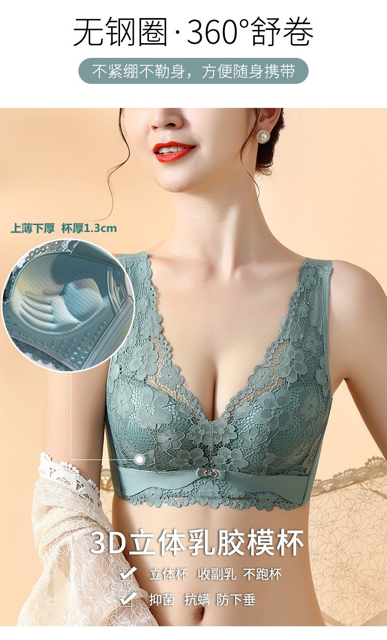 작은 가슴을 가진 여성을 위한 Tingmei 라텍스 속옷, 푸시업, 보조 유방, 처짐 방지 조끼 스타일, 와이어 프리 브라 세트