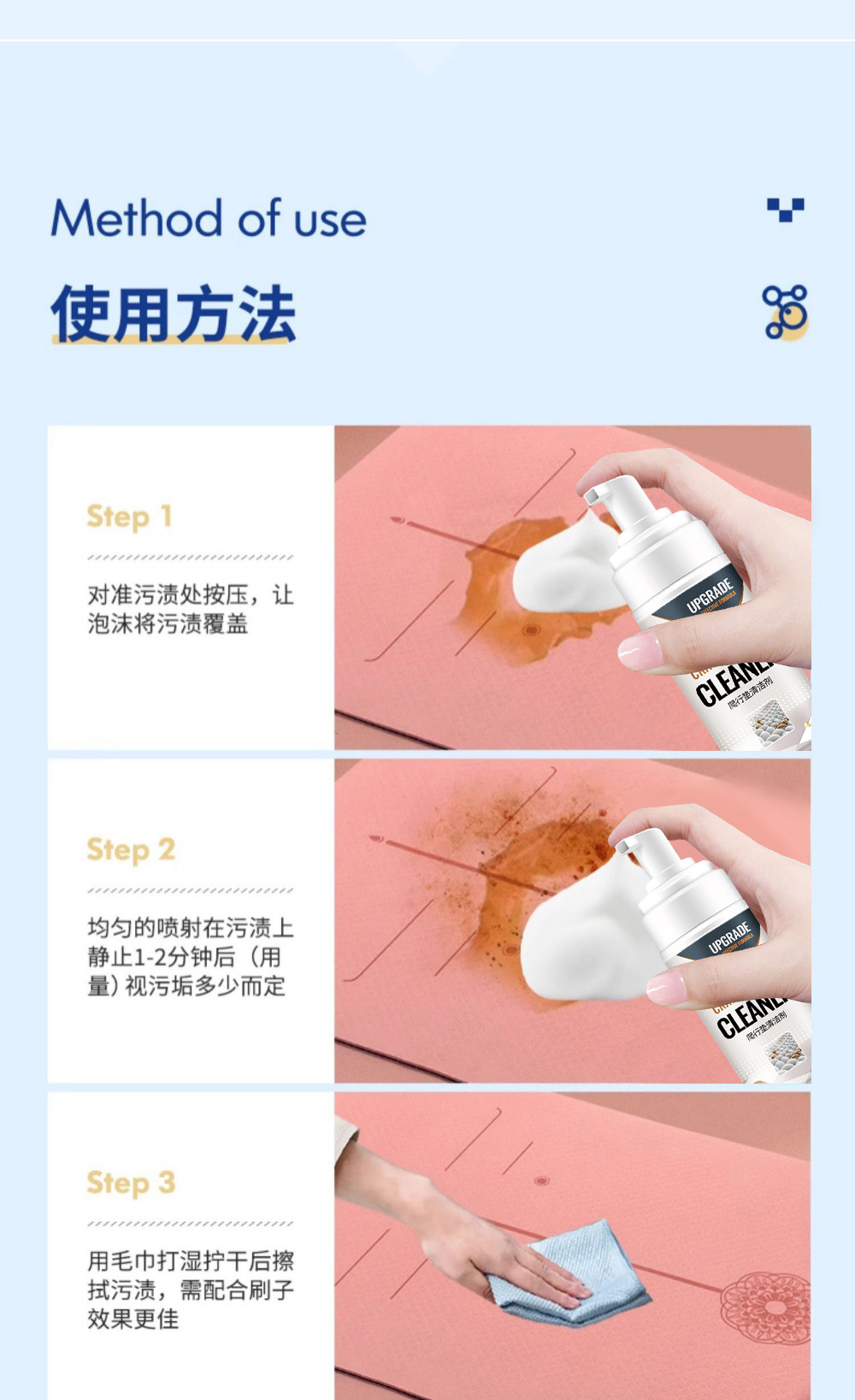 크롤링매트 세척제, 유아용 접이식 크롤링매트 얼룩 및 끈적끈적한 세척제, 무수 카펫 드라이클리닝제