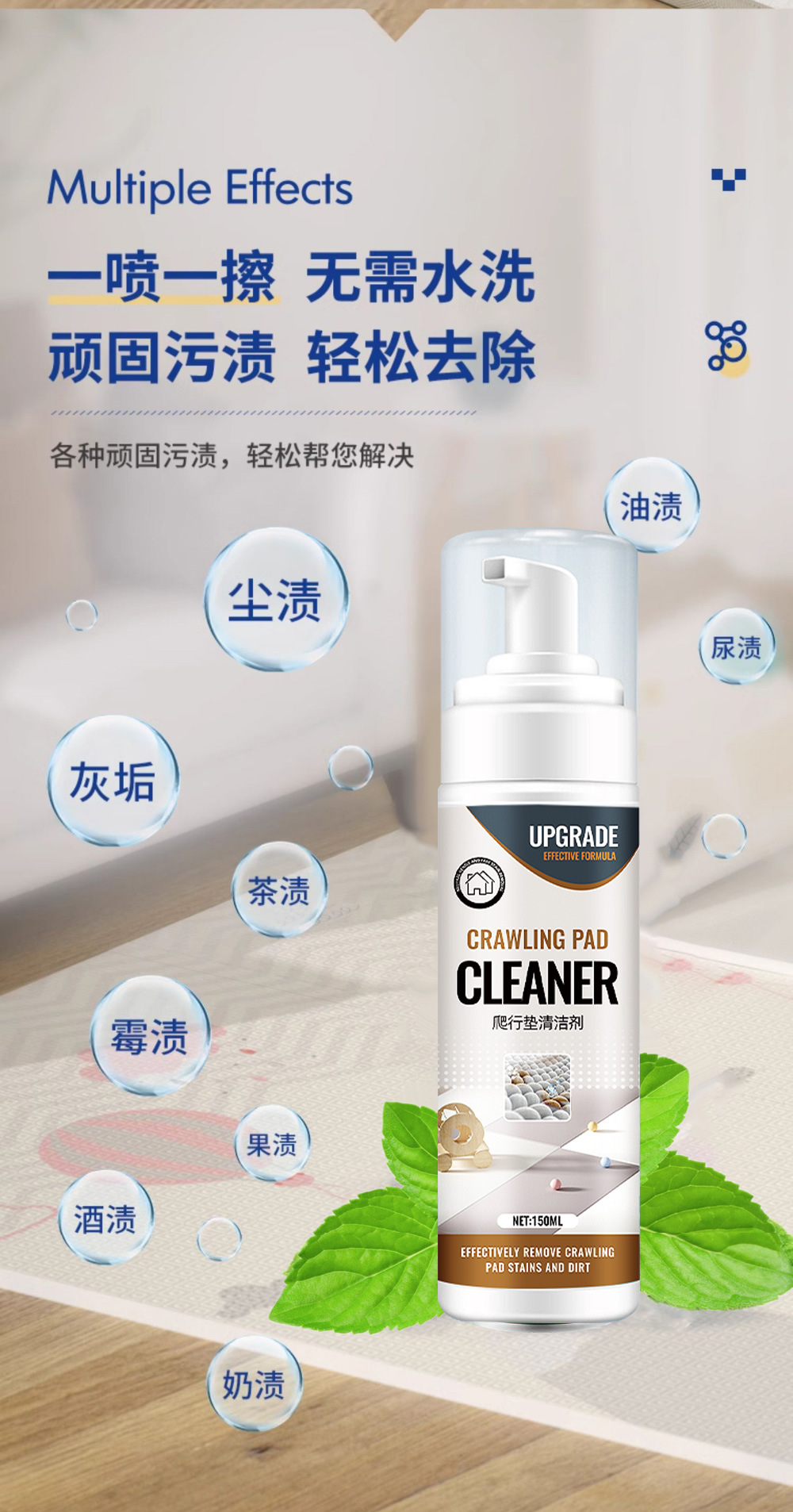 크롤링매트 세척제, 유아용 접이식 크롤링매트 얼룩 및 끈적끈적한 세척제, 무수 카펫 드라이클리닝제스토어 가기