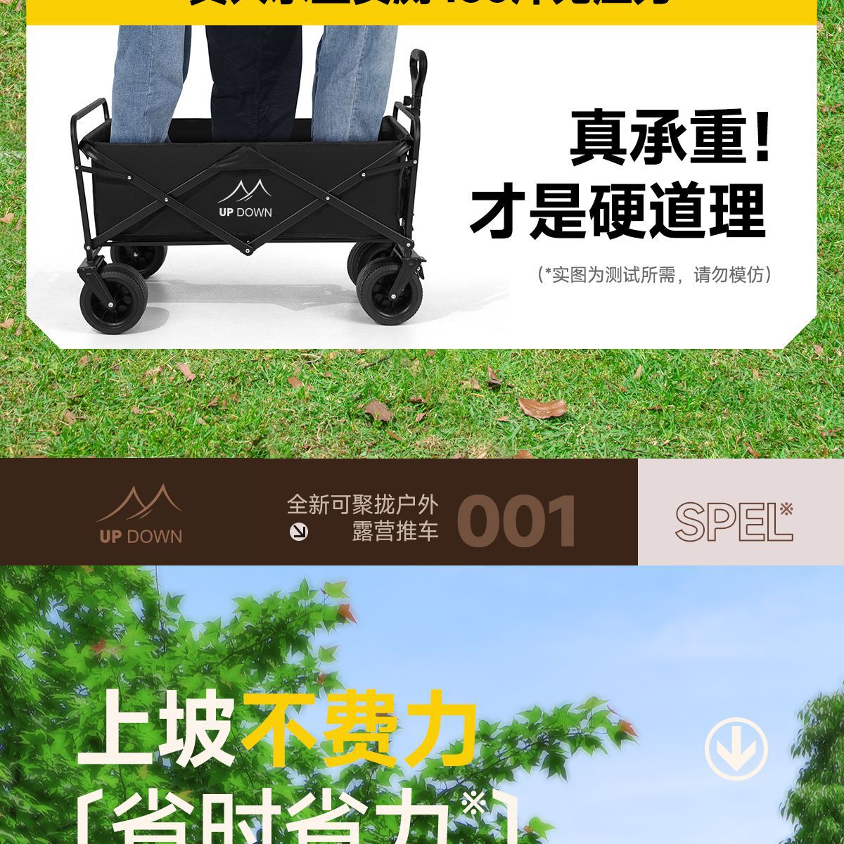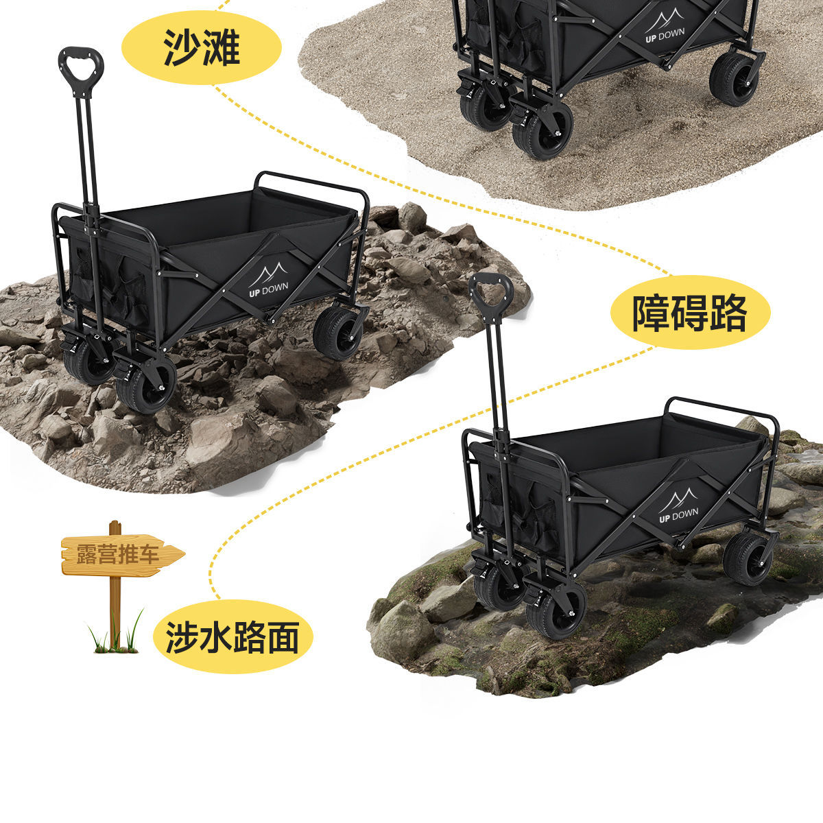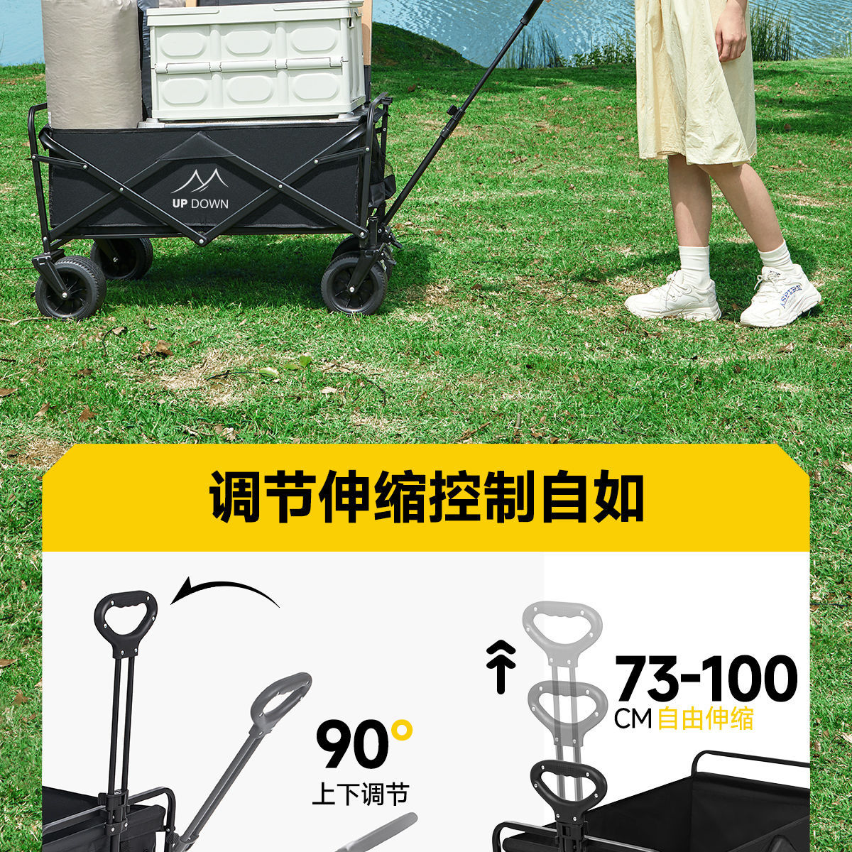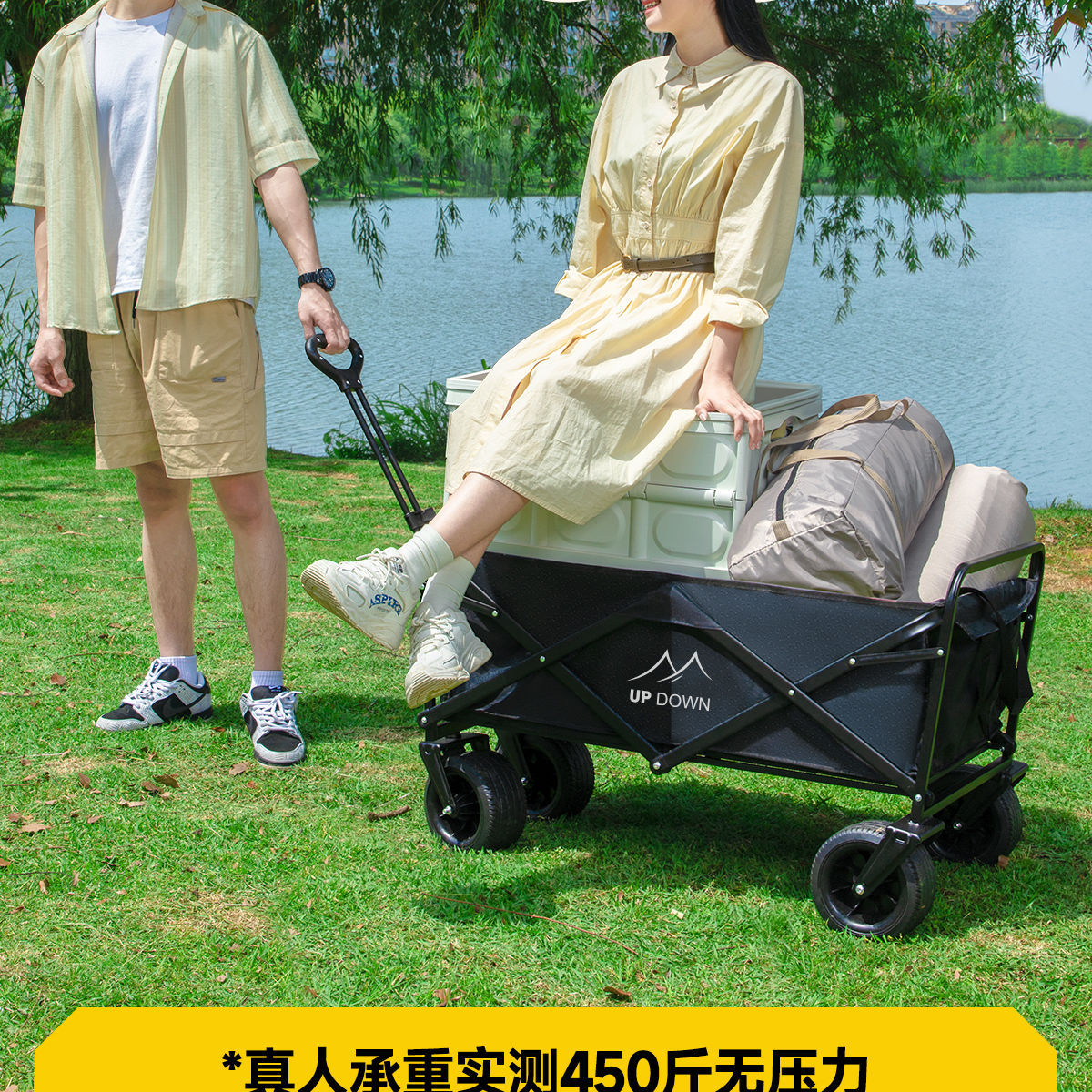 Updown 캠핑카 대형 야외 접이식 캠핑카 어린이용 리클라이닝 스톨 캠핑 트레일러 카트